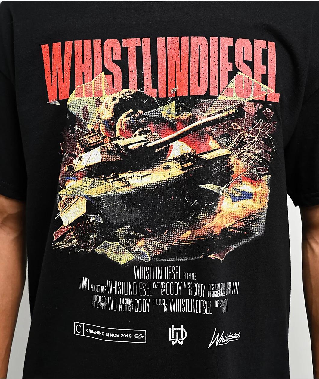 Add an explosive touch to any casual outfit with the WhistlinDiesel The Movie t-shirt. Landing in a black colorway with a graphic on the front of a tank emerging from an explosion surrounded by faux Movie poster branding, the soft cotton tee has an a