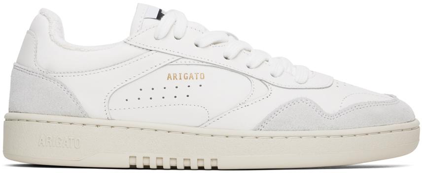 Handcrafted low-top buffed leather, suede, and recycled canvas sneakers in white.