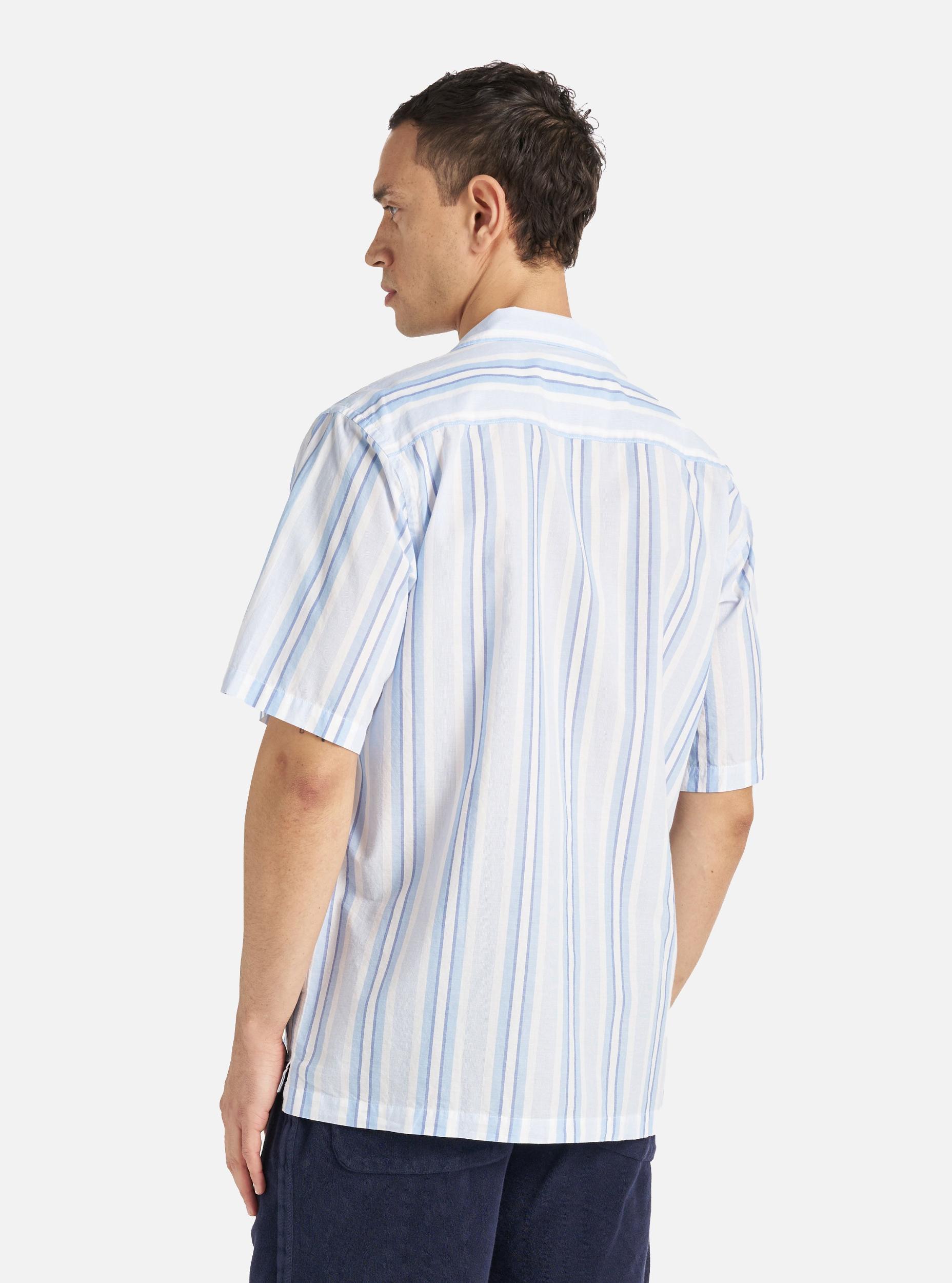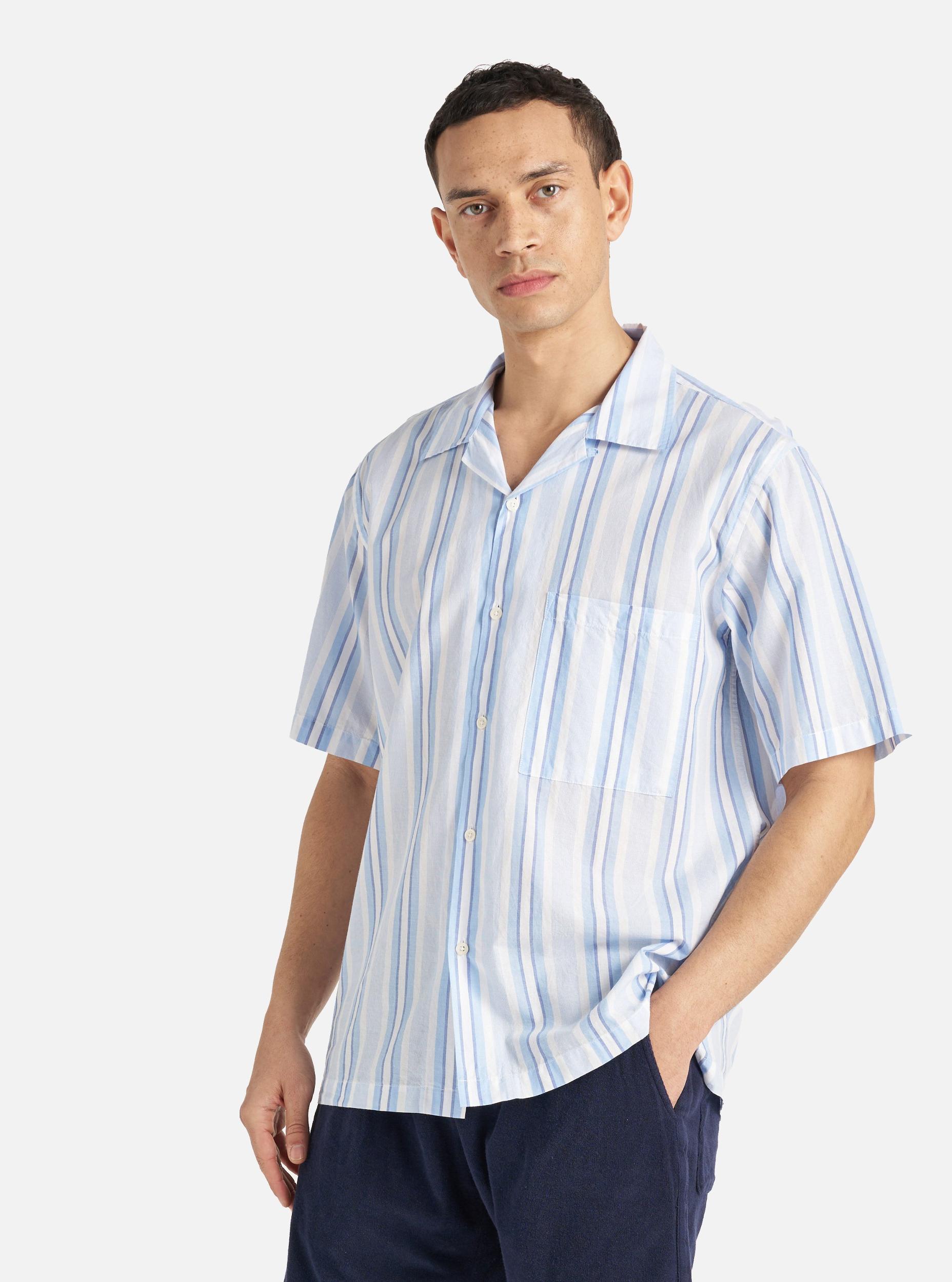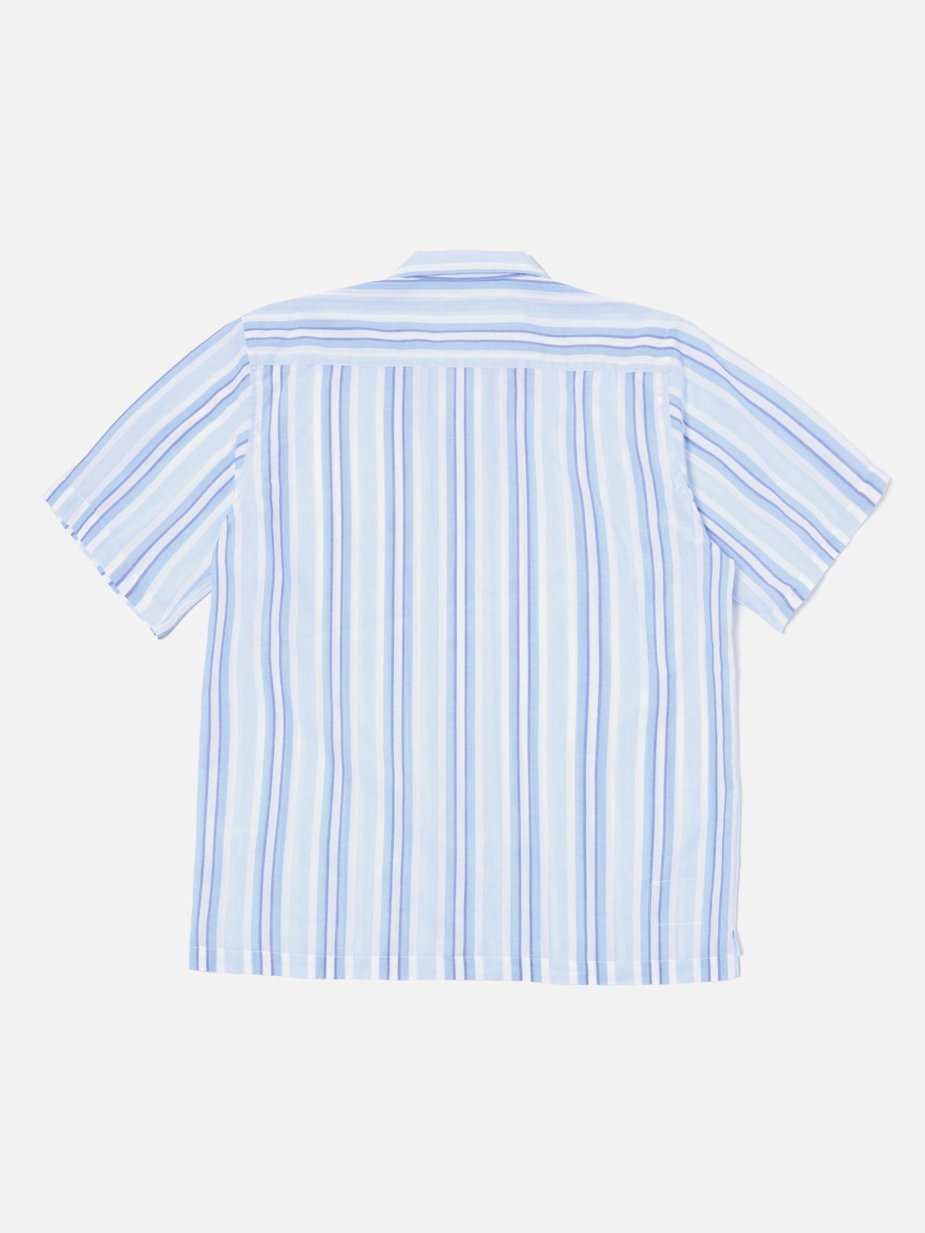 A more spacious and relaxed fit than our Road Shirt—which lends itself to a slightly larger collar too. With a loop-close top button, which looks great worn open-necked for a laid-back look. This also has a slightly elongated hem at the back with a side split, and a square pocket on the chest. An exclusive stripe we developed ourselves, on simple cotton shirting. A lightweight base, this has none of the crispness you might associate with Poplin, but still with that summer softness. • One-piece collar. • Wide fit. • Side split hem, longer at the back. • Short loose sleeves. • One large chest pocket. • Fabric Content: 100% Cotton. • Washcare: Wash at 30 degrees. Do not bleach. Do not tumble dry. Warm iron. Do not dry clean. Wash like colours together. Do not iron decoration. • Please be aware that the measurements below are technical measurements that are based on the garment laid flat and are useful as a general guide only. Measured in Centimetres. XS S M L XL XXL XXXL Centre Back Length. 70 72 74 76 78 80 82 Chest Width - 2.5cm Below Armhole. 53.5 56 58.5 61 63.5 66 68.5 Sleeve Length - From Shoulder (inc. Cuff.) 25 26 27 28 29 30 31 Across Shoulders. 44 46 48 50 52 54 56