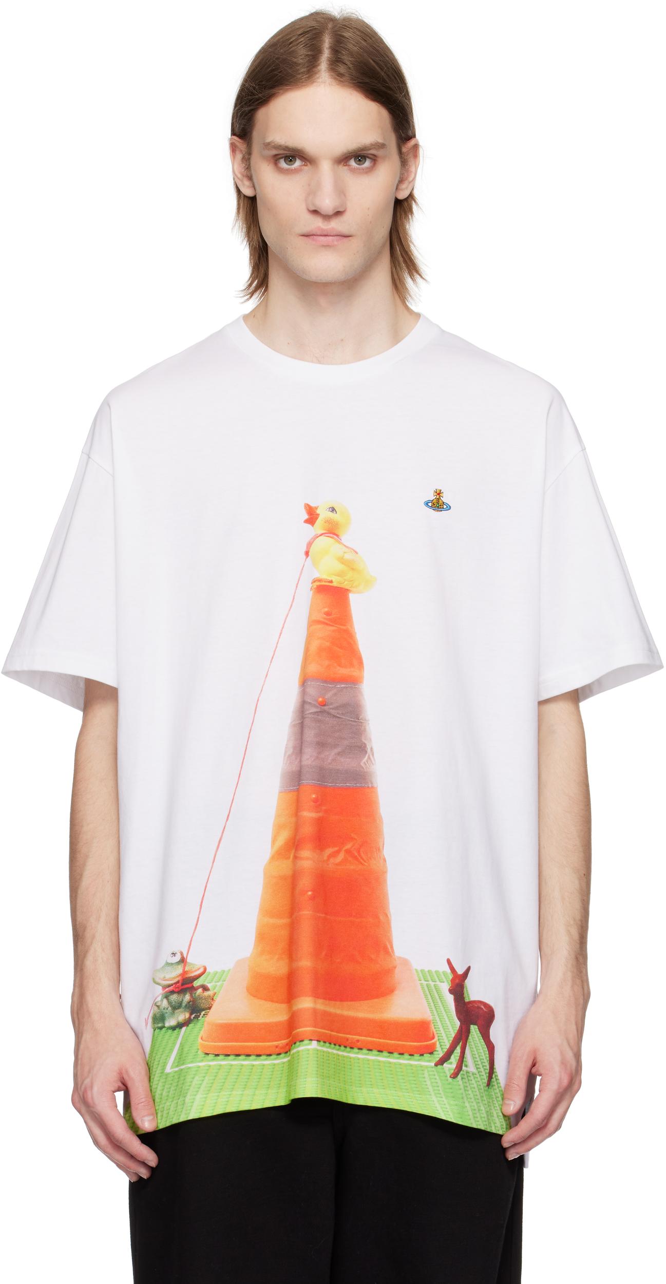 Organic cotton jersey T-shirt. · Rib-knit crewneck · Logo embroidered at chest · Graphic printed at front · Tennis-tail hem Supplier color: White