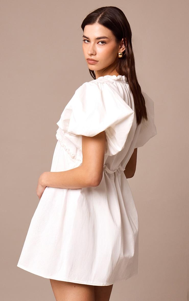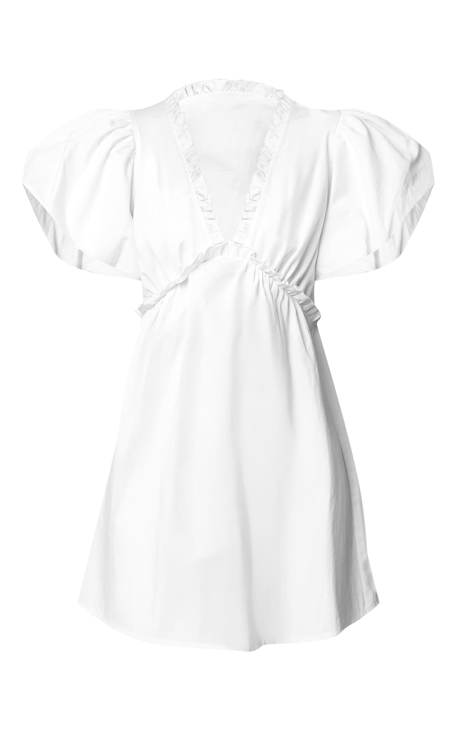 Created with a blend of white cotton material with short puff sleeves, under-bust gathering, frill detailing and a mini a-line fit. For effortless elegance, pair this white cotton gathered a-line dress with simplistic strappy kitten heels, chunky gold hoop earrings and statement gold rings.Length approx 81.5cm/32inch (Based on sample size US 4)Model wears size UK 8/ EU 36/ AUS 8/ US 4Model Height - 5ft 8inchp]:!mb-4inch>Brand: PrettyLittleThingCategory: DressesProduct type: Shift DressColor: WhiteMaterial: Woven CrepeDesign: PlainNeckline: PlungeSleeves: ShortOccasion: Evening