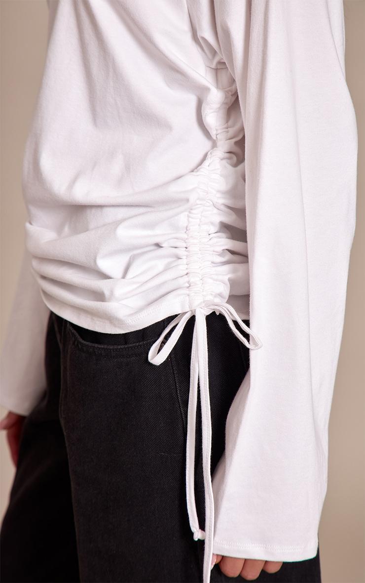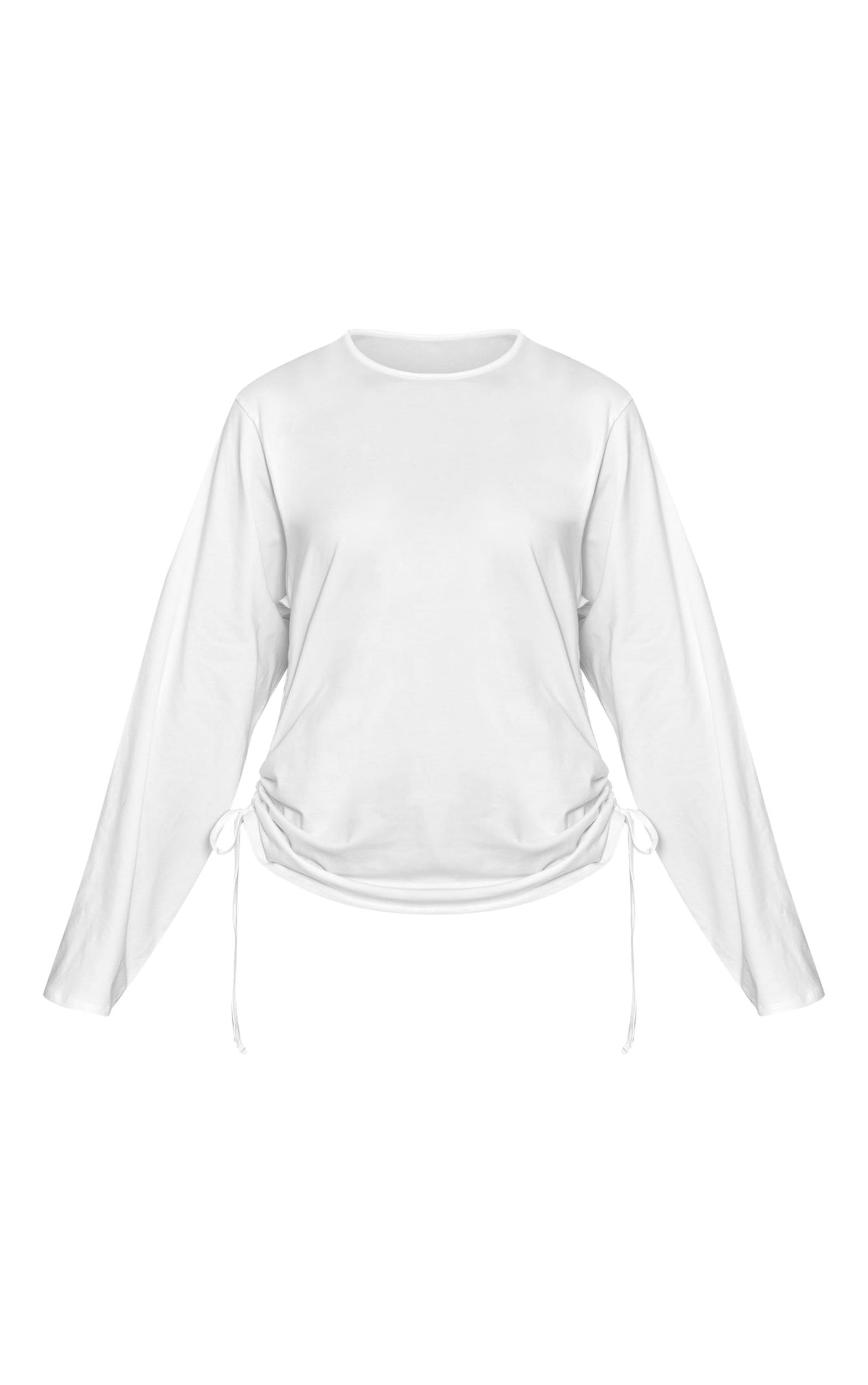 Master the art of effortless dressing with the white cotton ruched side detail slouchy top, a core piece designed for dynamic daywear. This essential T-shirt features a classic crew neck and generous long sleeves, distinctly styled with adjustable drawstring ruching along the sides to allow for a customisable fit. Its relaxed, oversized cut pairs perfectly with tailored wide-leg pants and strong boots for a refined yet easy aesthetic. Complete your look with subtle gold jewelry, proving that understated style always makes the sharpest statement.Length approx 48.5cm/19inch (Based on sample size US 4)Model wears size UK 8/ EU 36/ AUS 8/ US 4Model Height - 5ft 7inchp]:!mb-4inch>Brand: PrettyLittleThingCategory: TopsProduct type: Oversized T-ShirtColor: WhiteMaterial: Cotton JerseyDesign: PlainNeckline: CrewSleeves: LongOccasion: Day