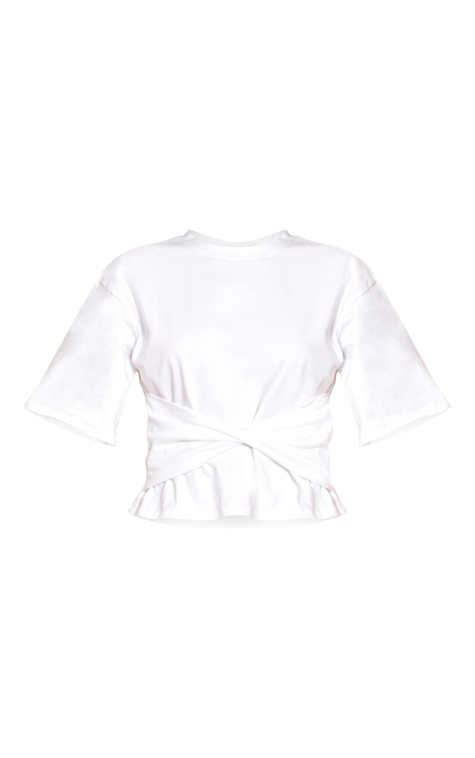 Make day dressing a statement. The white cotton wrap front t shirt redefines casual cool with its confident design. Featuring a classic crew neckline and relaxed short sleeves, this top's unique twisted front detail creates a flattering cinched waist and a contemporary cropped finish. Style yours with relaxed denim or sleek tailored pants and fresh sneakers for an on-point look that’s always effortless.Length approx 48.5cm/19inch (Based on sample size US 4)Model wears size UK 8/ EU 36/ AUS 8/ US 4Model Height - 5ft 9inchp]:!mb-4inch>Brand: PrettyLittleThingCategory: TopsProduct type: Oversized T-ShirtColor: WhiteMaterial: Cotton JerseyDesign: PlainNeckline: CrewSleeves: ShortOccasion: Day