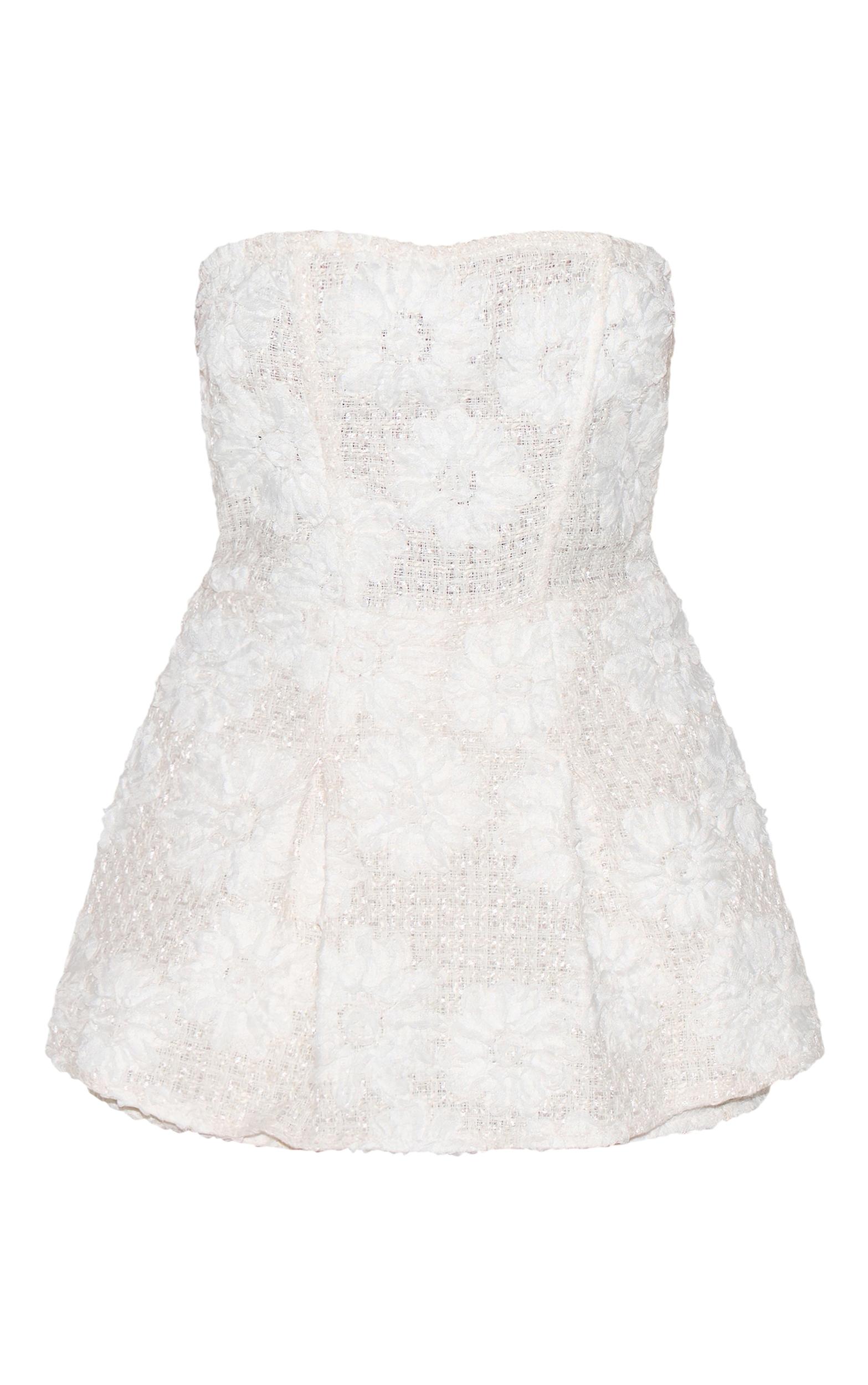 Bring all the luxe feels to your weekend look with this white embellished tween bandeau skort romper. Made from a white tweed material with an embellished design and a bandeau neckline, what more could you want? Style this skort romper with heels and simple gold accessories for a look that will have all eyes on you. Length approx 58.5cm/23inch (Based on sample size US 4)Model wears size UK 8/ EU 36/ AUS 8/ US 4Model Height - 5ft 9inchp]:!mb-4inch>Brand: PrettyLittleThingCategory: DressesProduct type: Tailored PlaysuitColor: WhiteMaterial: Woven JacquardDesign: PlainNeckline: BardotSleeves: BandeauOccasion: Evening