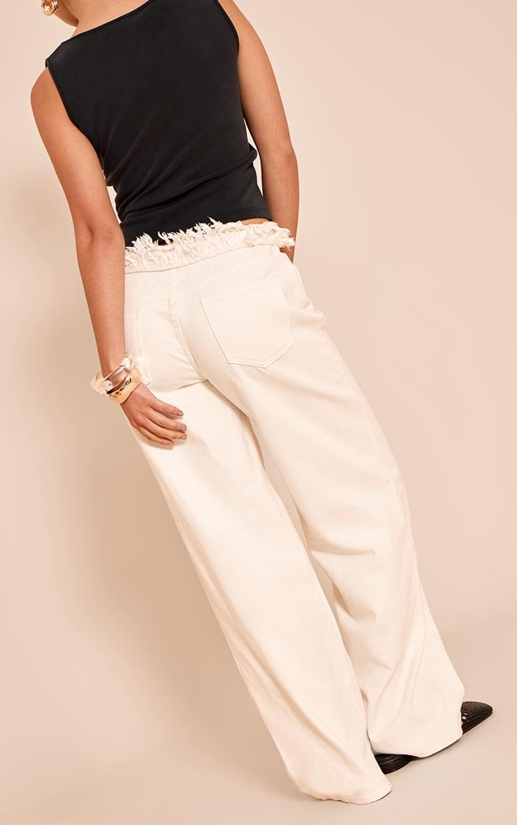 Take your daytime look to the next level in these white extreme frayed waistband wide leg jeans. Brought to you in white denim, these jeans have a wide leg fit and a frayed waistband design. Team them with a basic top and ballet flats for a casual yet chic look.Length approx 77.5cm/30.5inch (Based on sample size US 4)Model wears size UK 8/ EU 36/ AUS 8/ US 4Model Height - 5ft 7inchp]:!mb-4inch>Brand: PrettyLittleThingCategory: DenimProduct type: Wide Leg JeansColor: WhiteMaterial: Rigid DenimDesign: PlainOccasion: Day