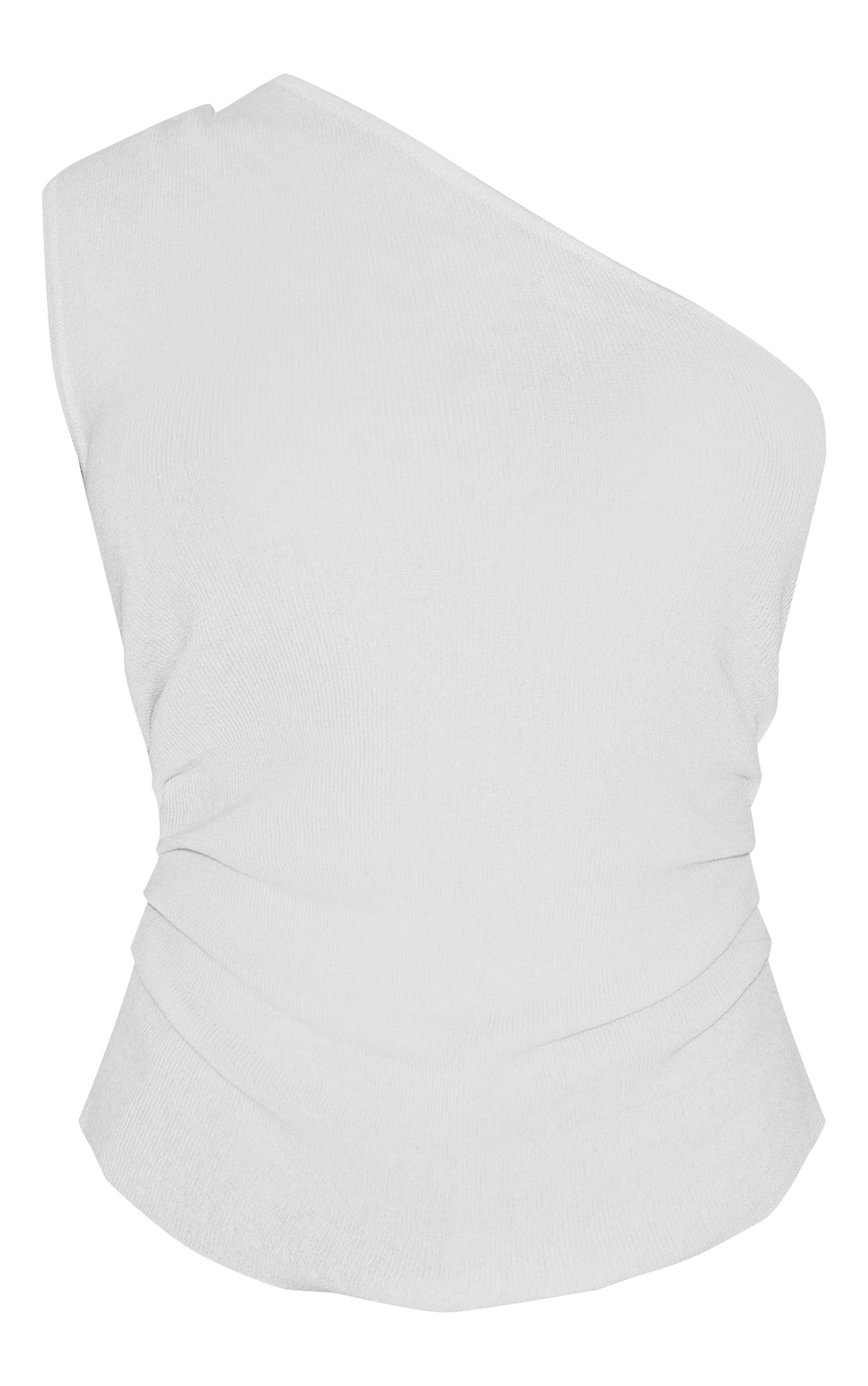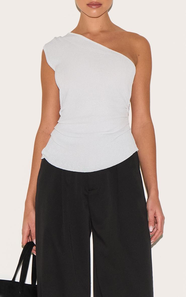 Brought to you in a versatile white fine knit material with a one shoulder design and a flattering ruched side detail.Length approx 48.5cm/19inch (Based on sample size S)Model wears size SModel Height - 5ft 8inchp]:!mb-4inch>Category: KnitwearProduct type: Vest TopColor: WhiteMaterial: Fine KnitNeckline: CrewSleeves: SleevelessOccasion: Day
