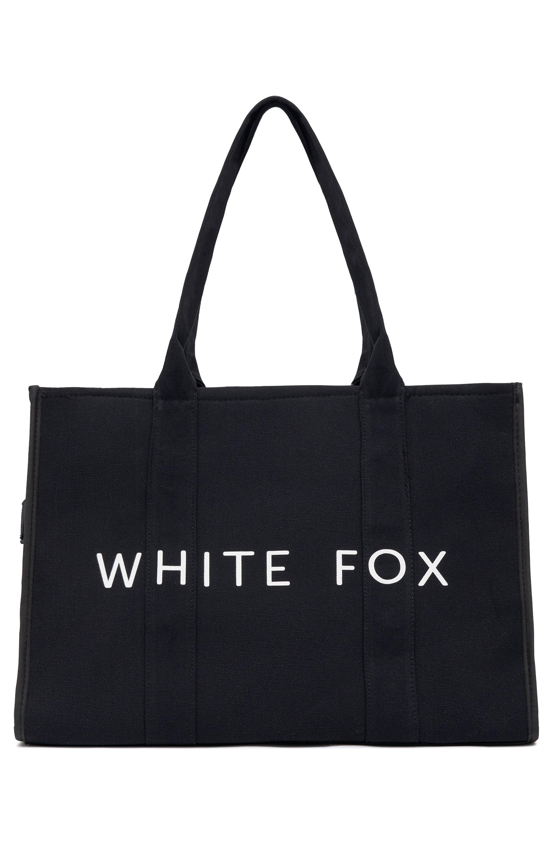 Get ready to feel a lil' stylish with the White Fox Tote Bag Black. Features a durable and thick fabric, thick straps, zipper closure, canvas fabric and printed White Fox Logo centre front. Style with your everyday outfit of the day for extra style points. Fabrication: 100% Cotton Canvas32cm H x 45cm H x 16cm