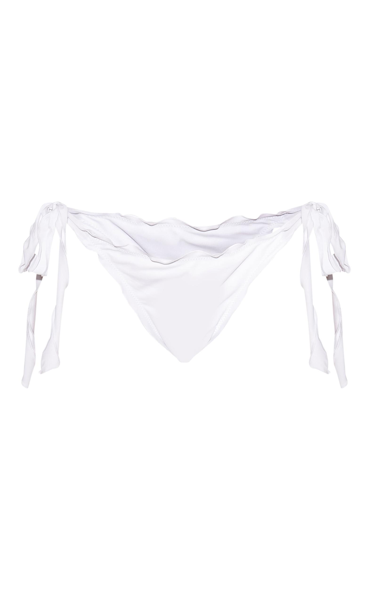 These bikini bottoms are a study in considered detail. The clean white fabric provides a crisp foundation for the delicate frill trim and tie-side fastenings, offering subtle textural interest. The adjustable ties allow for a customisable fit, ensuring both comfort and style whether poolside or beachside. Pair these with a triangle bikini top from our swimwear collection and a wide-brimmed hat for a truly elevated warm-weather look. Length approx 23cm/9inch (Based on a sample size UK 8) Model wears size UK 8/ EU 36/ AUS 8/ US 4Model Height - 5ft 5inchp]:!mb-4inch>Brand: PrettyLittleThingCategory: SwimwearProduct type: Tanga Bikini BottomColor: WhiteMaterial: SwimOccasion: Day