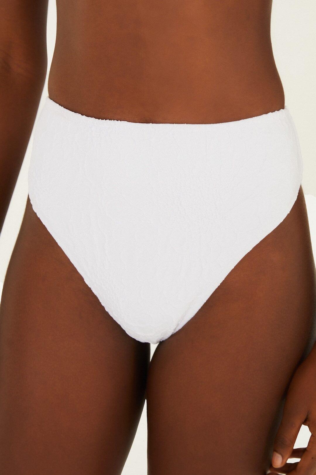 Embrace sunny days with the White Gerbera Daisy High Waist Bikini Bottom from FARM Rio. Crafted in a clean white silhouette, it features playful gerbera daisy prints that burst with vibrant, cheerful energy. The high-waisted cut flatters your shape while offering comfortable coverage, blending retro charm with modern ease. Soft and inviting, this piece captures the brand’s signature warmth and joyful spirit, making every beach moment feel effortlessly bright and alive.