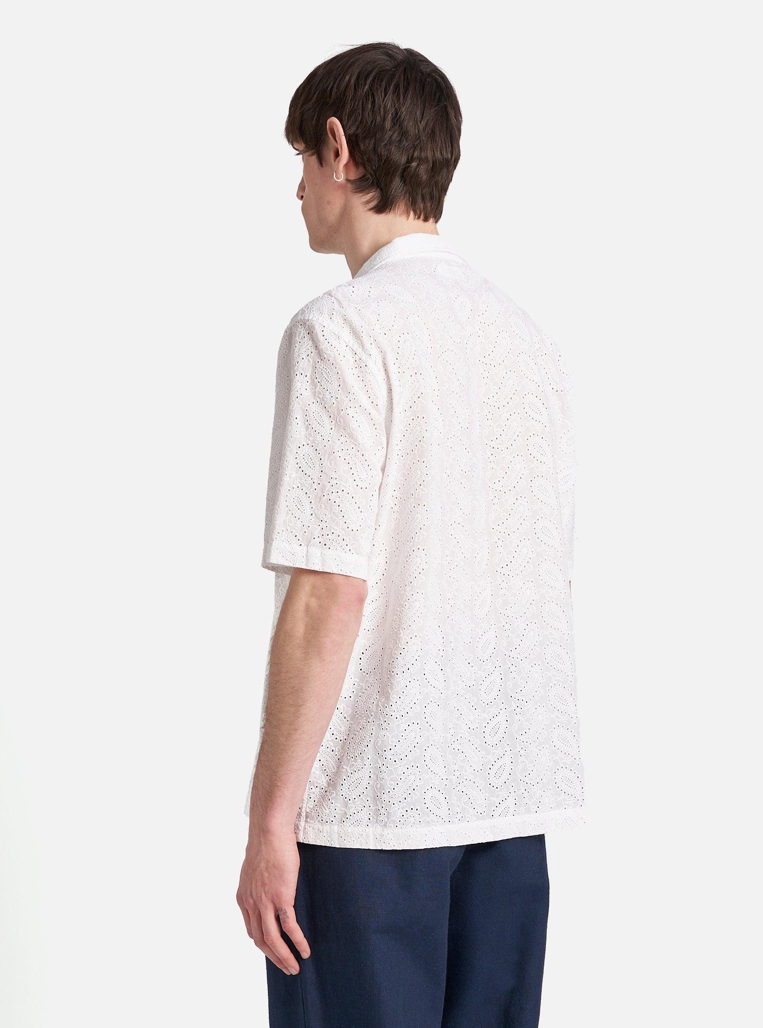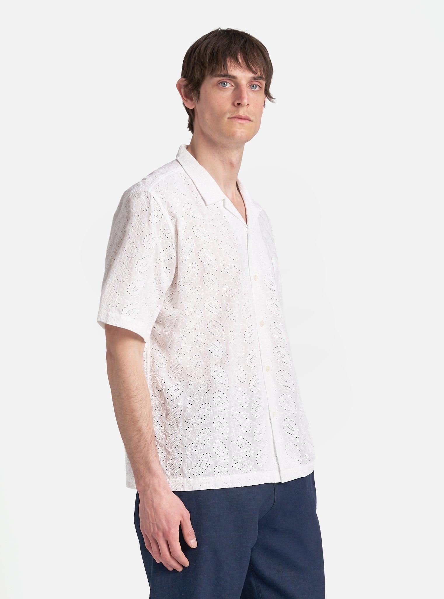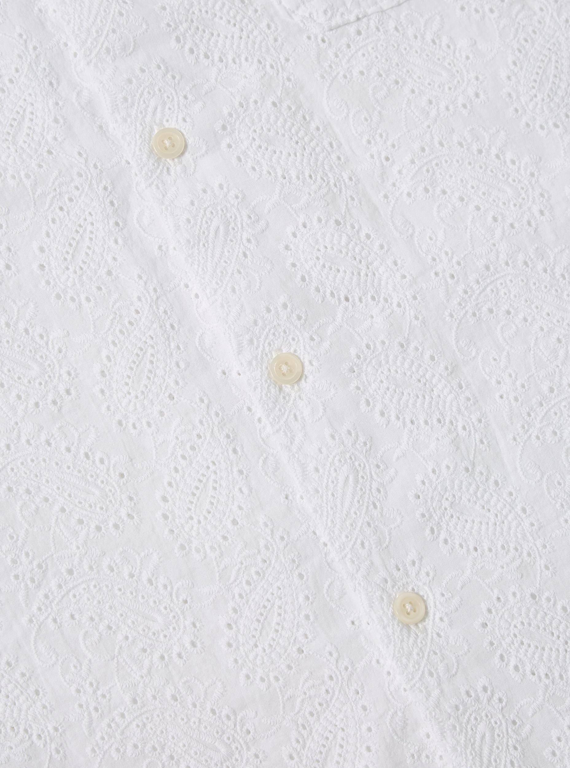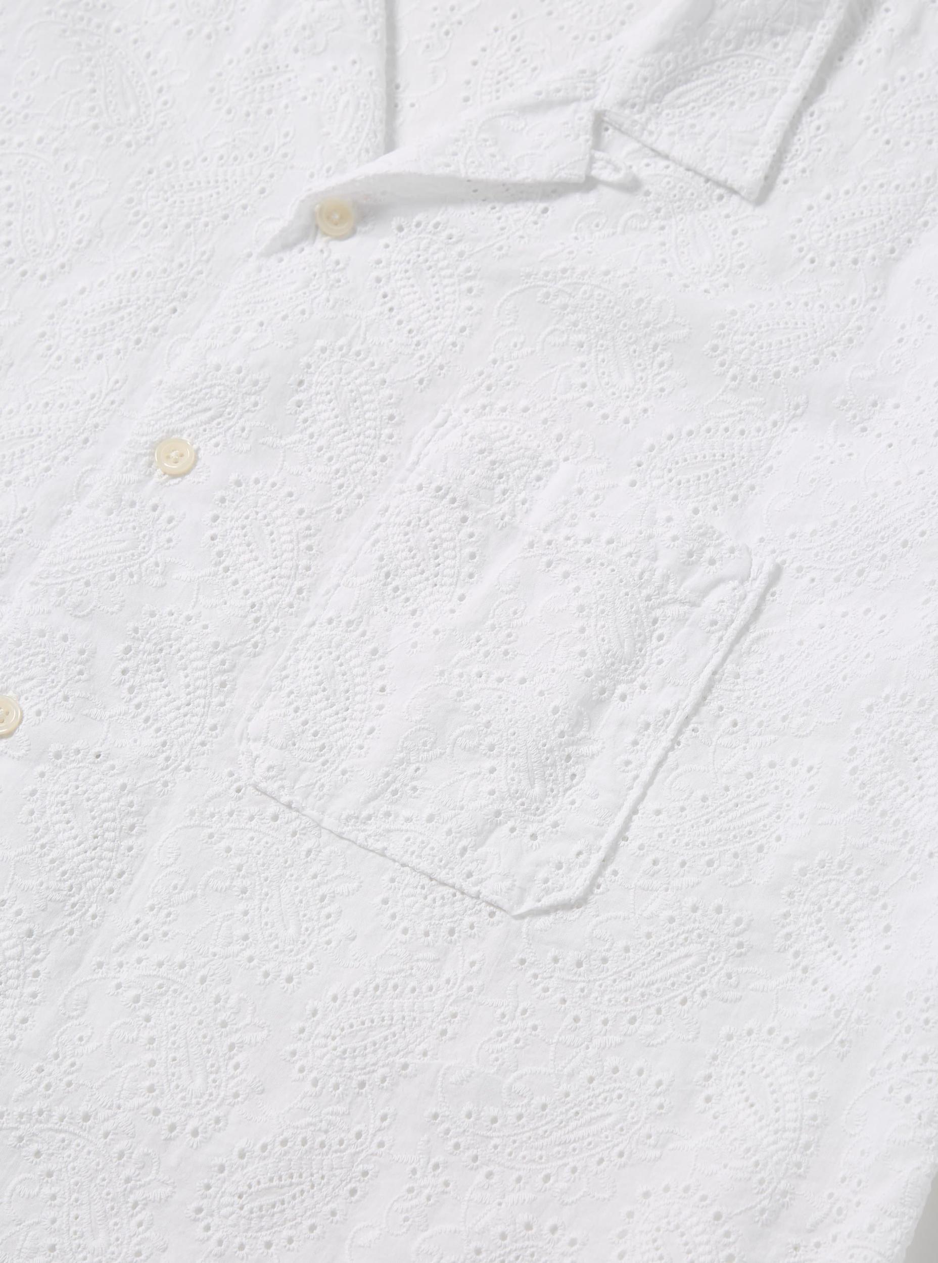 Our longest-running, no-fuss short-sleeve shirt. With a sharp, regular fit and a loop-close top button designed to be worn open-necked, but with the option to button it up for smarter styling. With a straight hemline and a front patch pocket. • Regular fit. • Single-piece, loop-close collar. • Straight hem. • Single chest patch pocket. • Fabric Content: • Washcare: • Please be aware that the measurements below are technical measurements that are based on the garment laid flat and are useful as a general guide only. Measured in Centimetres. XS S M L XL XXL XXXL Centre Back Length. 66 68 70 72 74 76 78 Chest Width - 2.5cm Below Armhole. 50.5 53 55.5 58 60.5 63 65.5 Sleeve Length - From Shoulder (inc. Cuff.) 24 25 26 27 28 29 30 Across Shoulders. 42 44 46 48 50 52 54