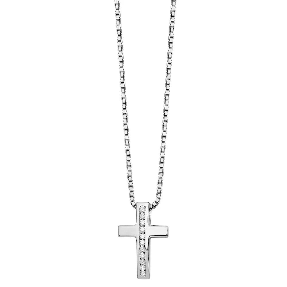 Express your faith with this beautiful White Ice sterling silver diamond accent cross pendant necklace. Express your faith with this beautiful White Ice sterling silver diamond accent cross pendant necklace. Metal: sterling silver Chain length: 18 in. + 2-in. extender Packaging: boxed Plating: rhodium Finish: polished Chain type: boxDIAMOND DETAILS Total weight: less than 1/10 ct. Shape: round Setting: prong Diamond weights are approximate. Diamond Total Weights may vary between .01 and .13 ct. Some diamonds consist of fewer than 17 facets. Gemstones may have been treated to enhance their appearance. Special care may be required. Please visit our Gemstone Treatment & Special Care Guide for more information. Image(s) may be enlarged to show detail. Please note, due to the high value of this item, a signature may be required upon delivery. Size: 18". Gender: female. Age Group: adult.