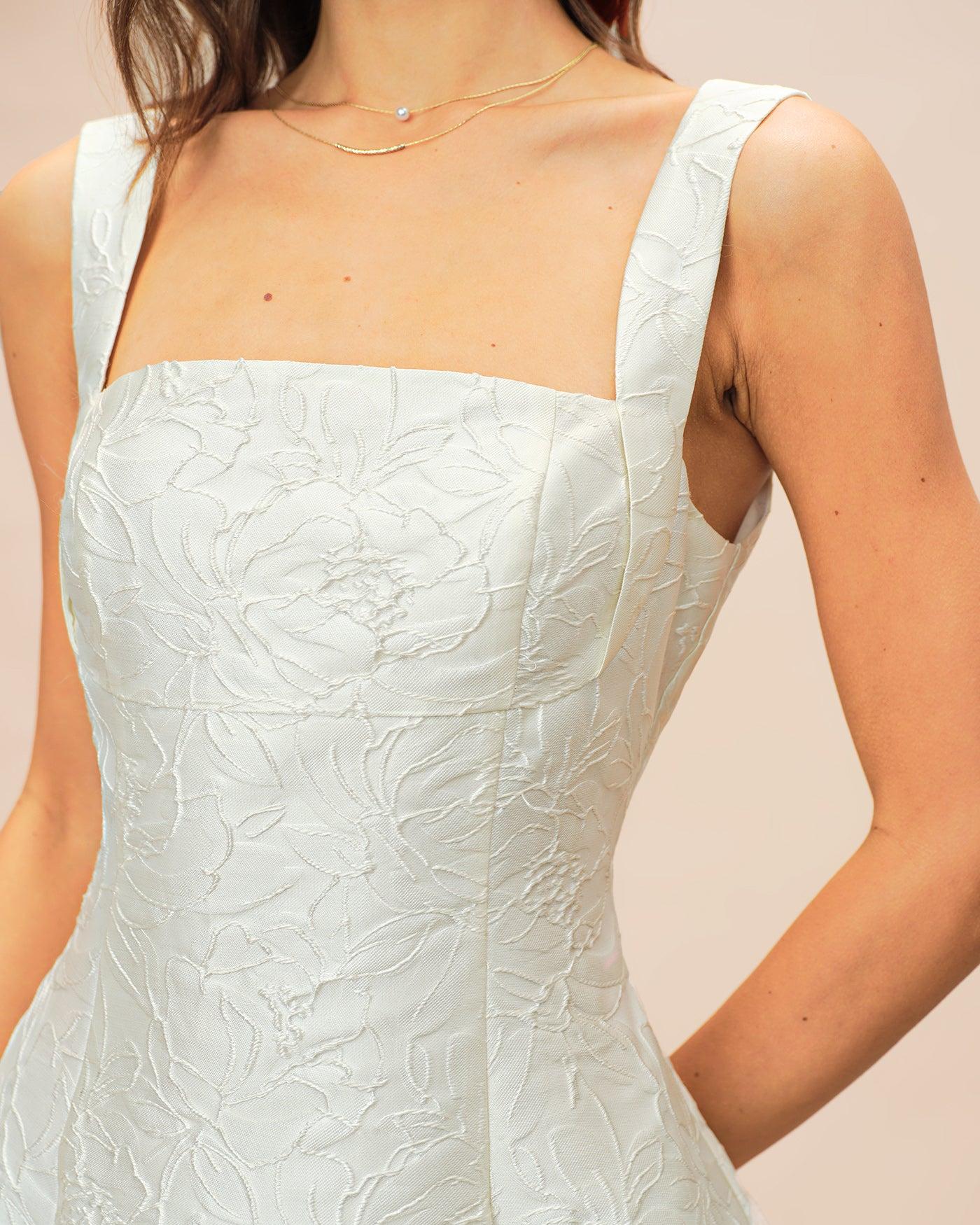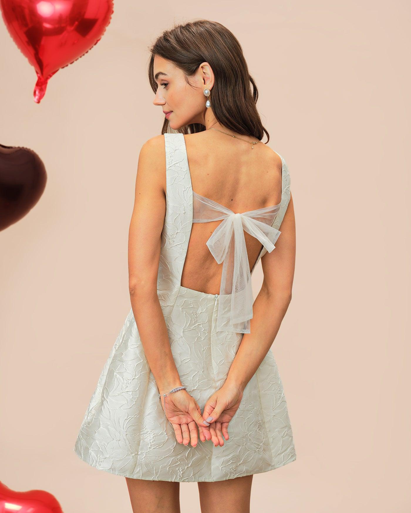 - Occasion: special occasion - Style: Formal - Season: Spring, Summer, Fall, Winter - Back Neckline: Open - Fabric Stretch: No Stretch - Waist: Natural Waisted - Sleeve Length: Sleeveless - Sleeve Type: Sleeveless - Pattern Type: Floral - Embellishment: Tie, Textured - Neckline: Square Neck - Dress Type: Sheath dress - Silhouette: A-Line - Fabric: Polyester - Fabric 2: Polyester 95.0%, Spandex 5.0% - Lining: Polyester - Material: Jacquard, Mesh