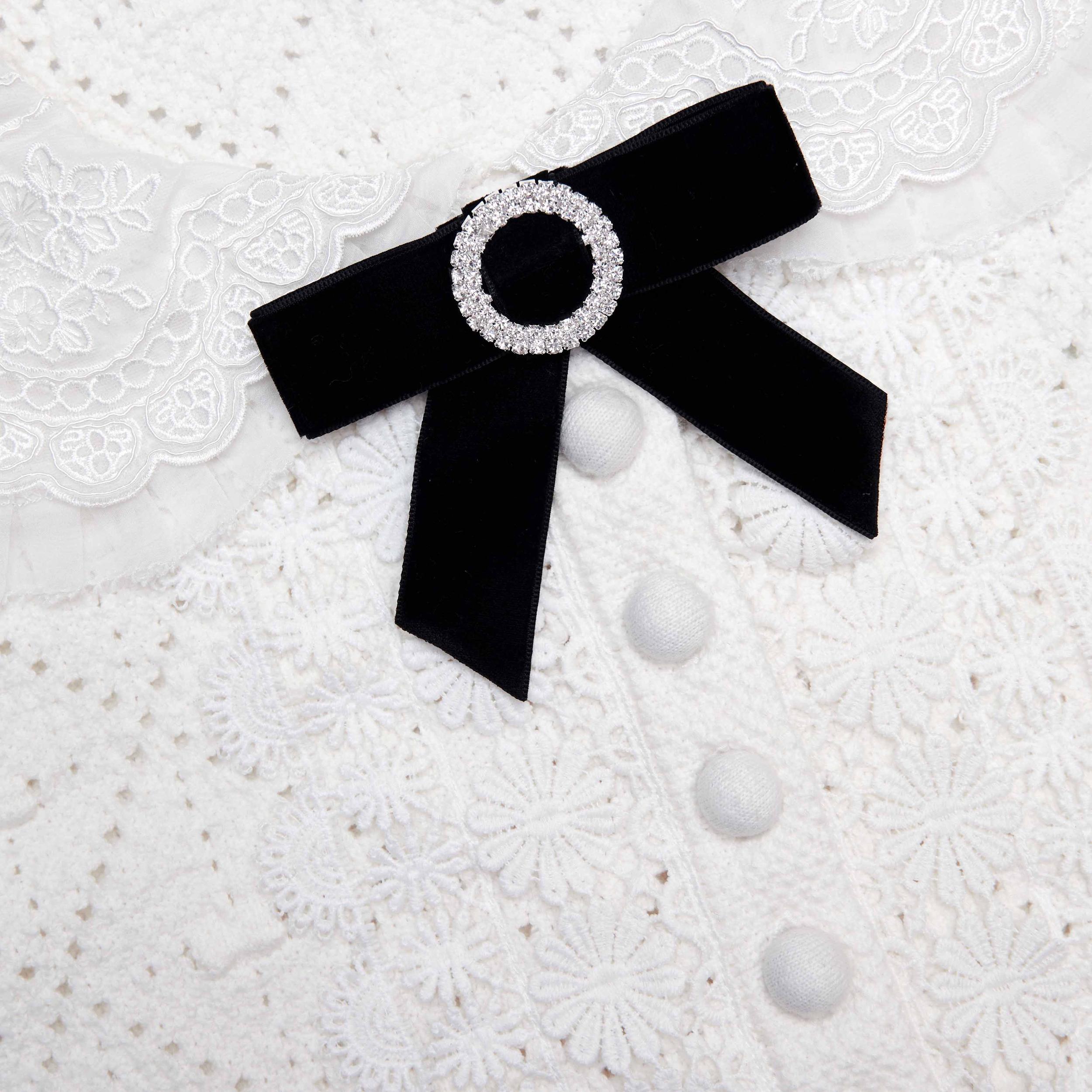 A front bib detail adds a stylish accent to this lace knit mini dress. Topped with a removable bow brooch, pair this ultra-feminine look with ballet flats for work drinks or nights at the opera.True to sizeFabric has stretchConcealed button closure down frontLace bib detailRemovable bow broochModel is 5ft10/178cm and wears a size S