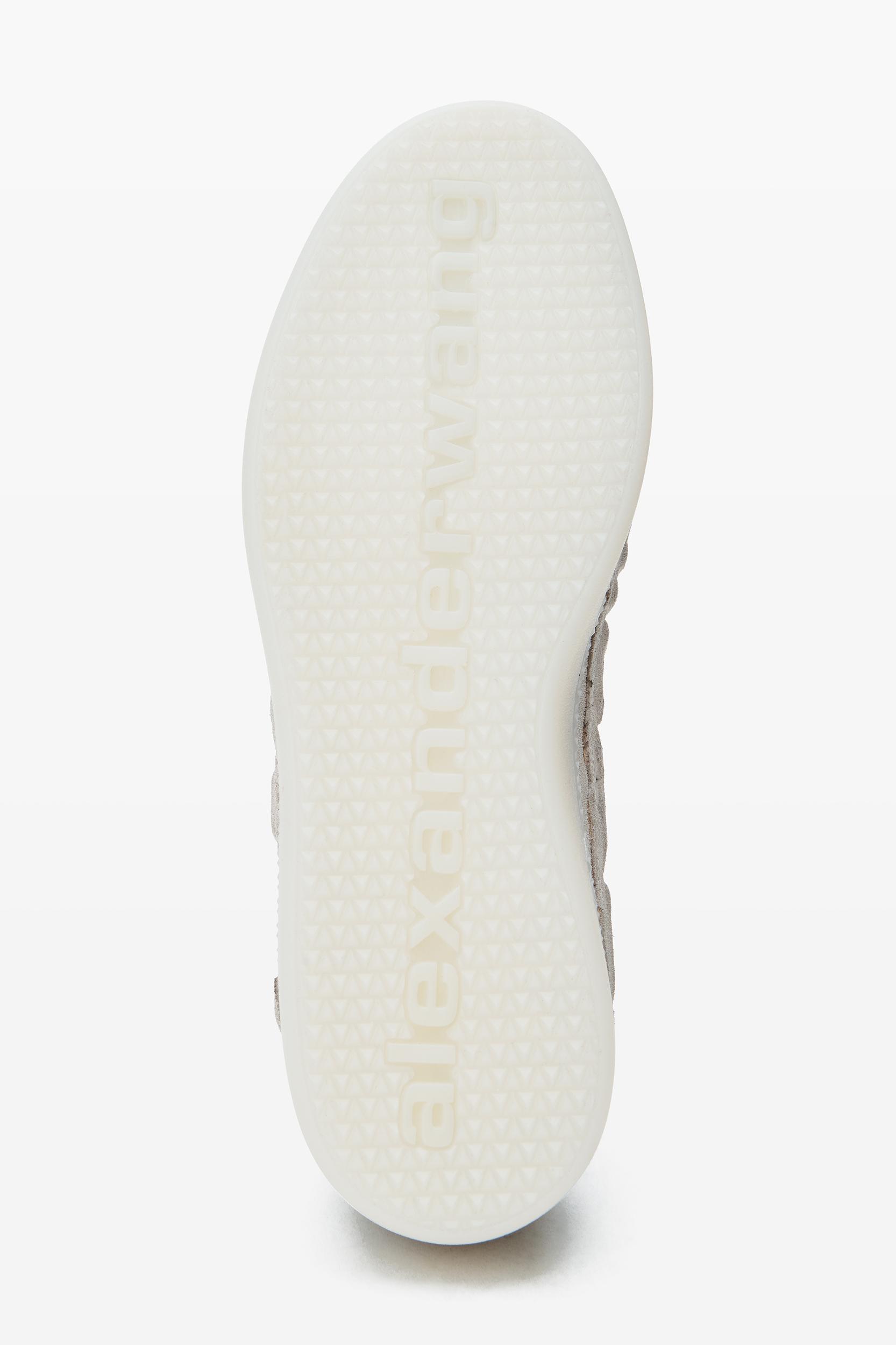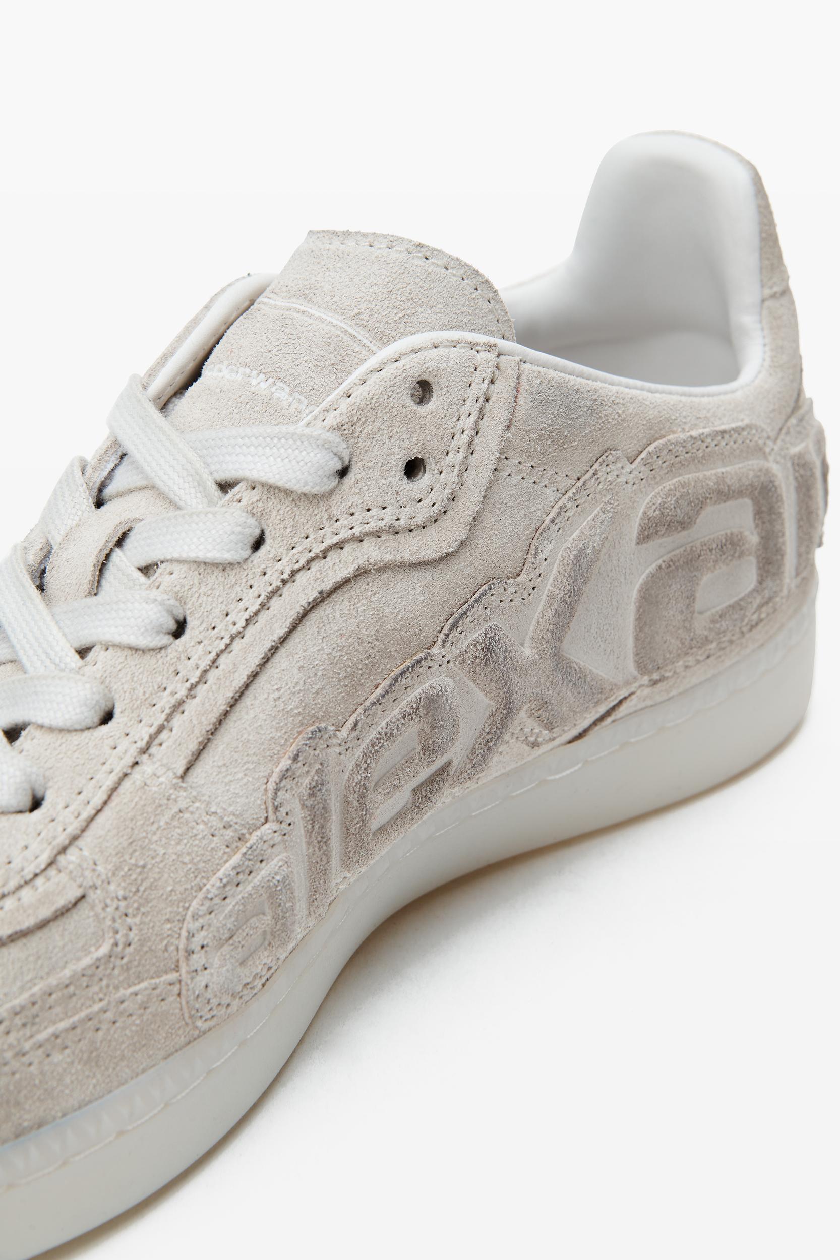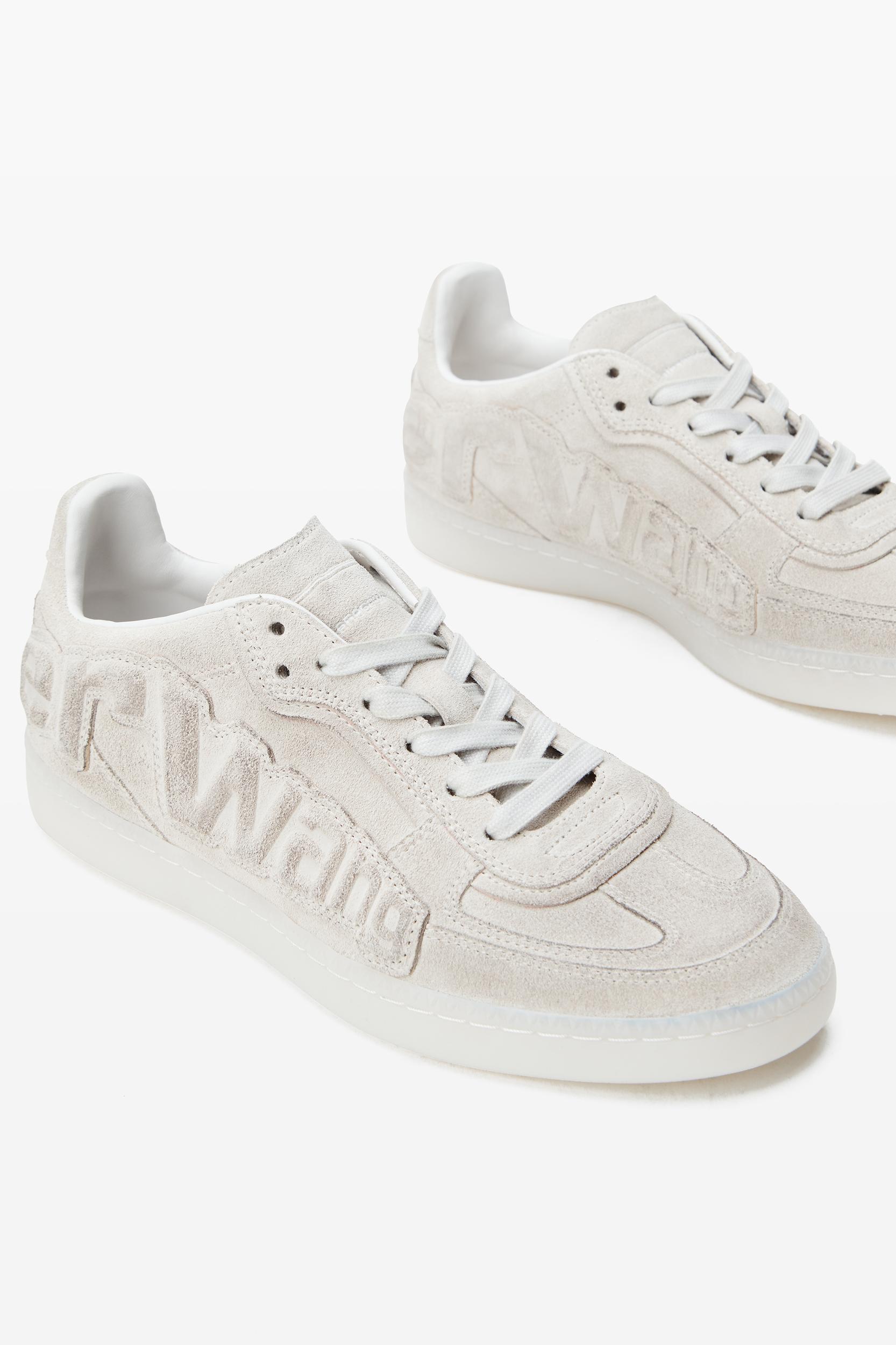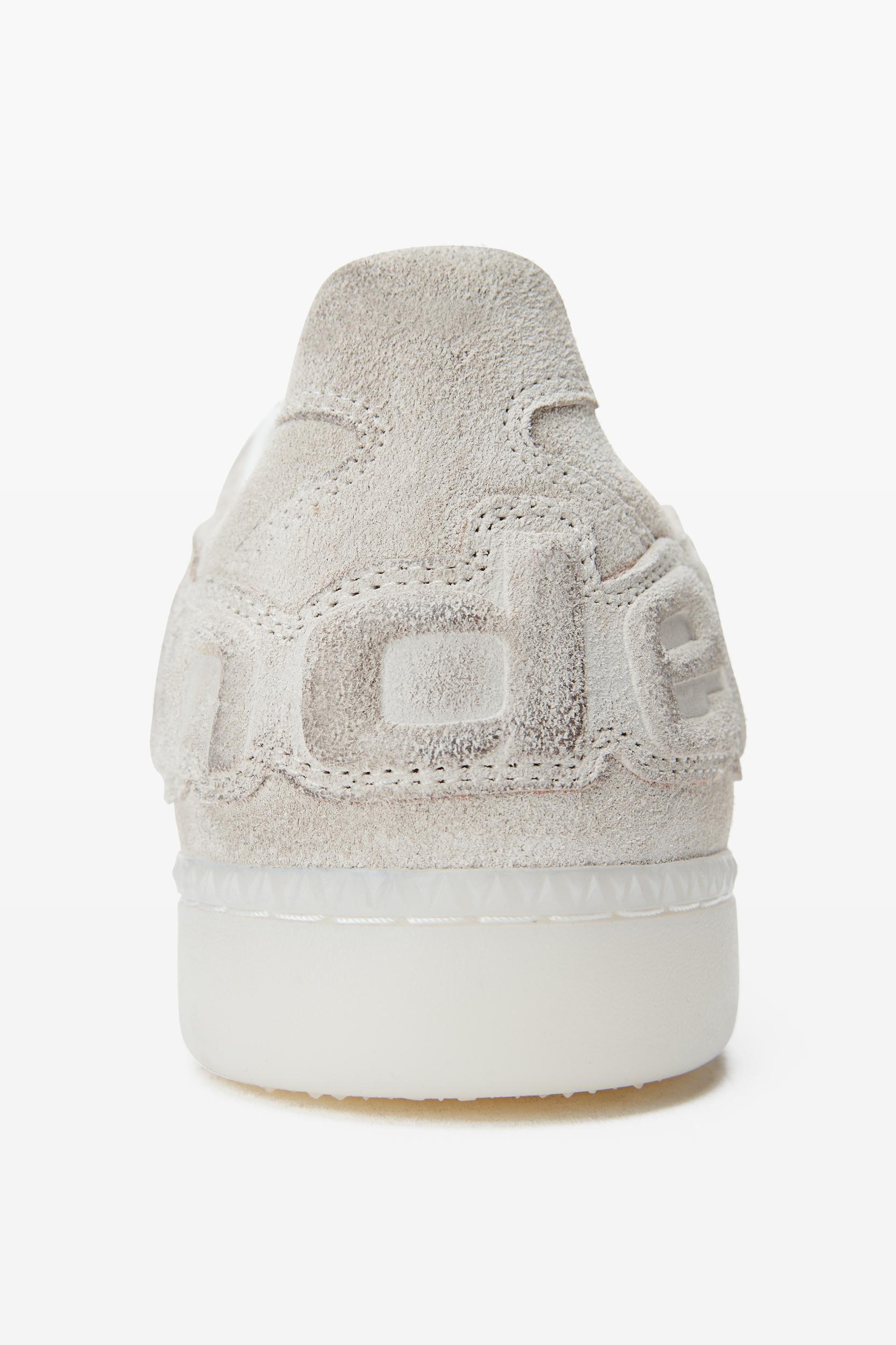 constructed with a wax-finished calf suede upper and sheep nappa lining, these white low-top sneakers sit on a rubber outsole.