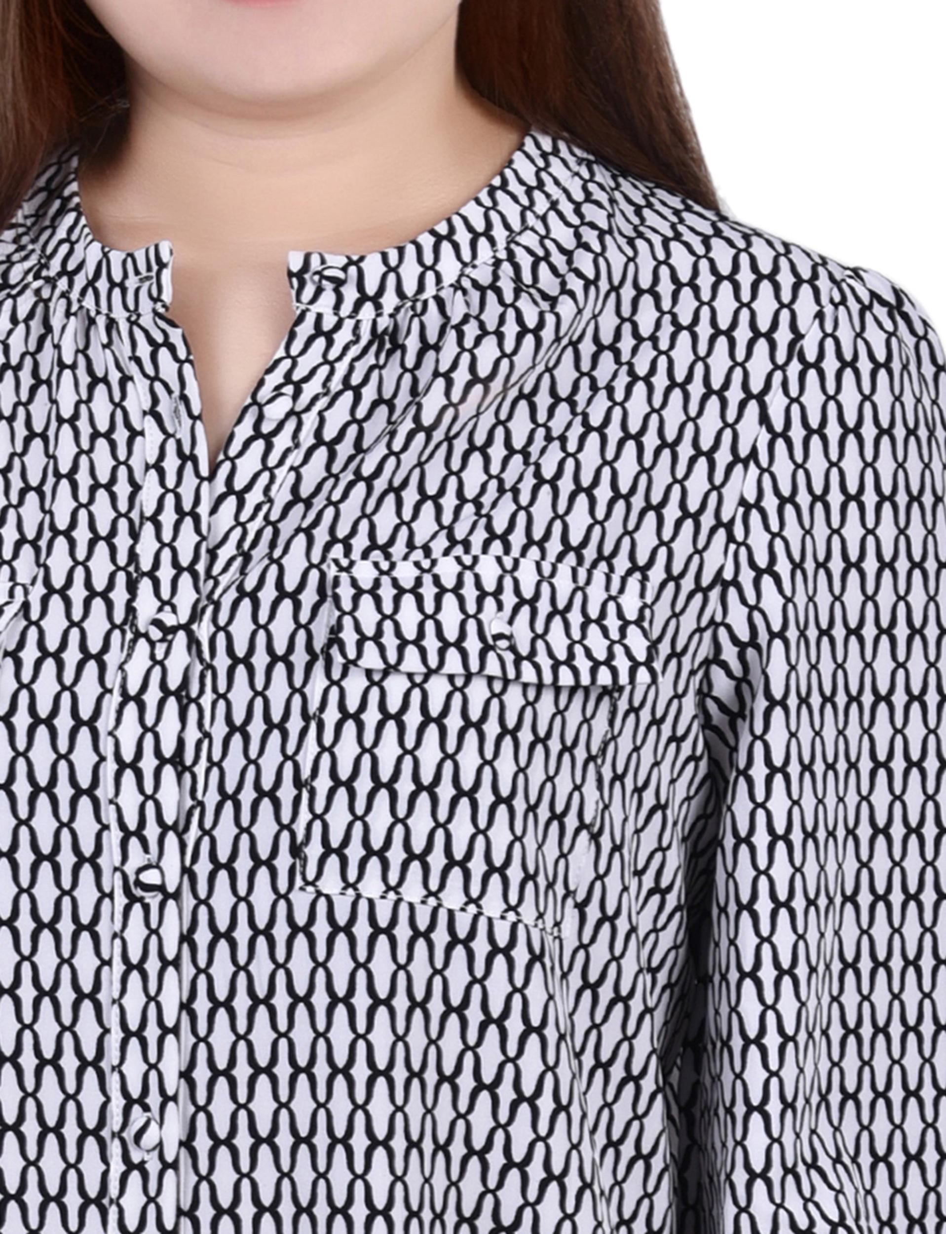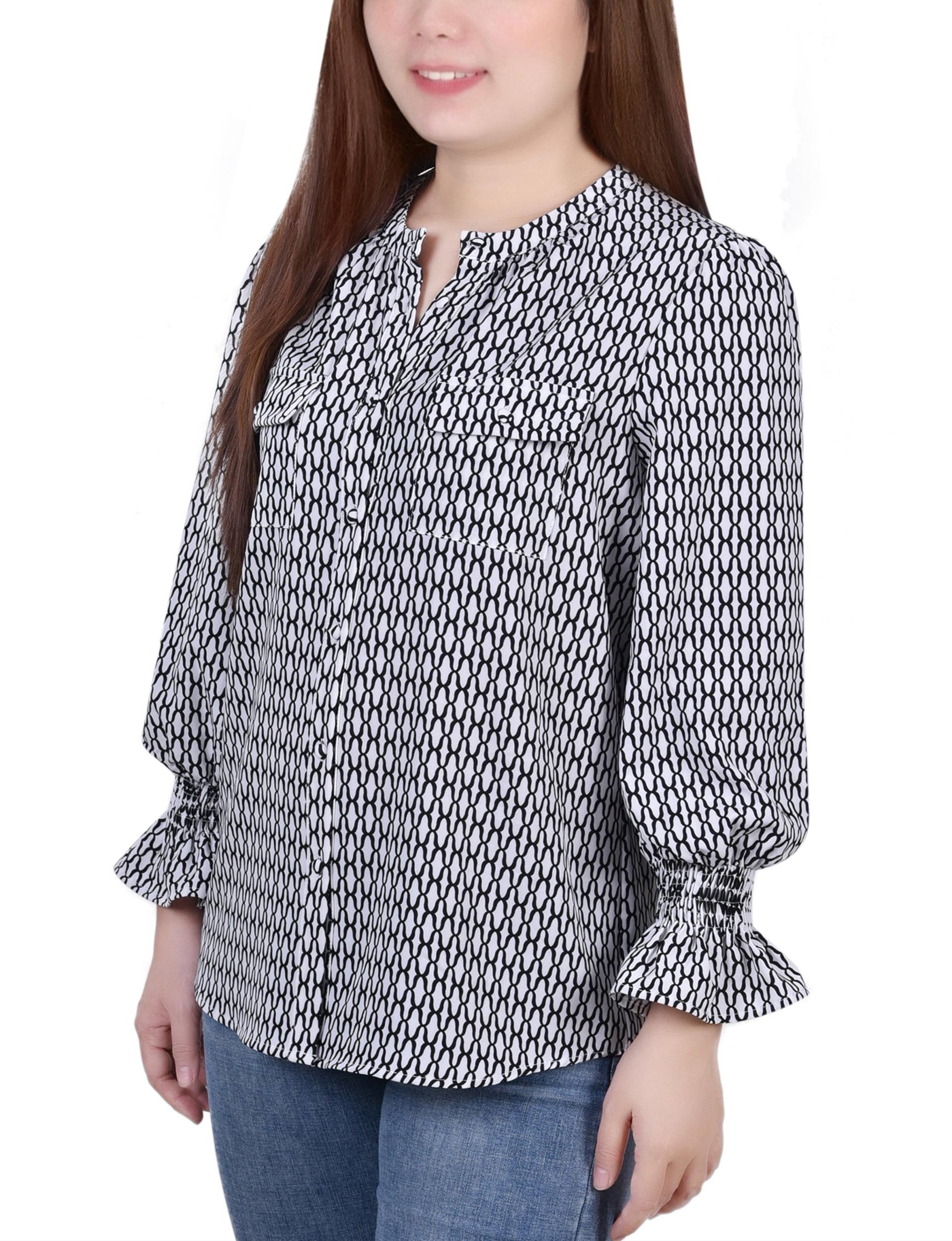 White Long Sleeve Button Front Blouse - Petite