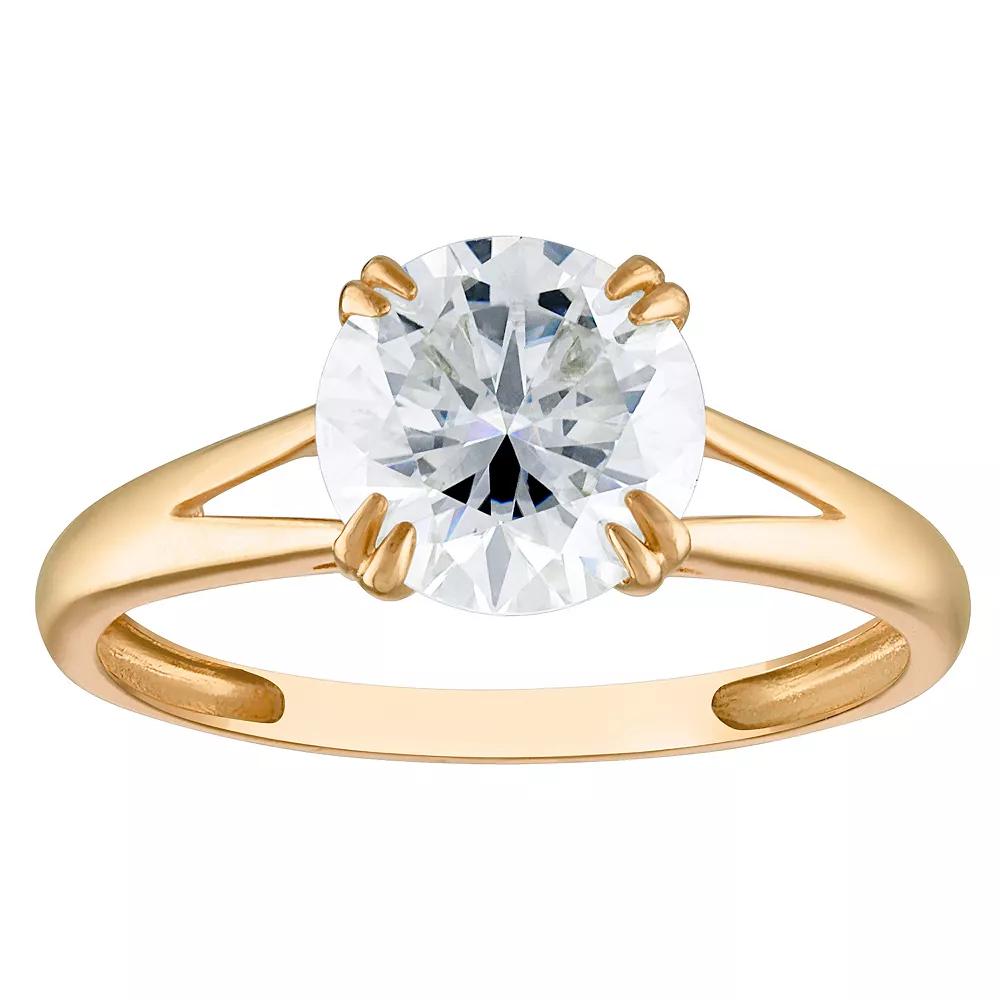 Display your undying love for all the world to see with this lab-created moissanite studded White Lotus 10k gold engagement ring. Display your undying love for all the world to see with this lab-created moissanite studded White Lotus 10k gold engagement ring. FEATURES Band width: 8 mm Nickel free Metal: 10k gold Finish: polished Packaging: boxedSTONE DETAILS Stone type: lab-created moissanite Total weight: 2 ct. Center stone size: 8 mm Center stone weight: 2 ct. Shape: round Setting: prong Gemstones may have been treated to enhance their appearance. Special care may be required. Please visit our Gemstone Treatment & Special Care Guide for more information. Please note, due to the high value of this item, a signature may be required upon delivery. Color: Yellow. Gender: female. Age Group: adult.