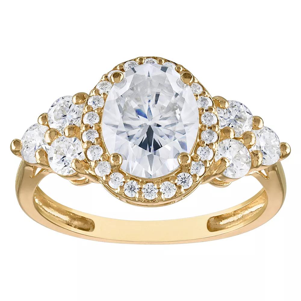 Display your devotion with a touch of vintage-inspired elegance with this 10k gold White Lotus Art Deco lab-created moissanite engagement ring. Display your devotion with a touch of vintage-inspired elegance with this 10k gold White Lotus Art Deco lab-created moissanite engagement ring. FEATURES Band width (widest): 11.35 mm Nickel free Metal: 10k gold Finish: polished Packaging: boxedSTONE DETAILS Stone type: lab-created moissanite Total weight: 3 1/4 ct. Center stone size: 9 mm x 7 mm Center stone weight: 2 ct. Shape: oval Setting: prong Gemstones may have been treated to enhance their appearance. Special care may be required. Please visit our Gemstone Treatment & Special Care Guide for more information. Please note, due to the high value of this item, a signature may be required upon delivery. Color: Yellow. Gender: female. Age Group: adult.