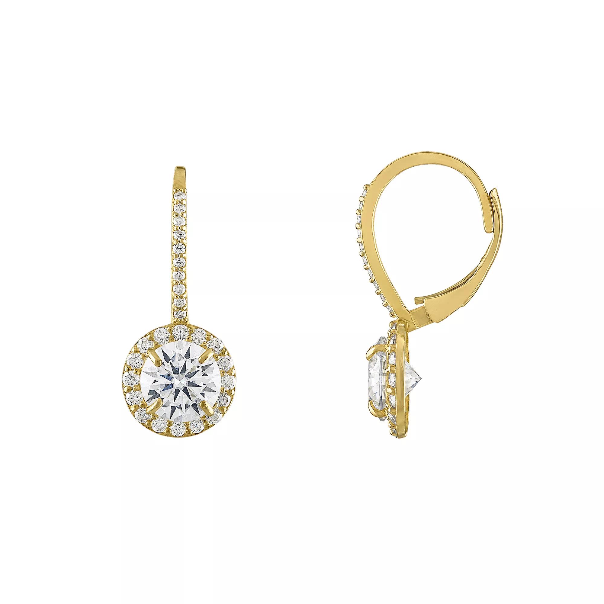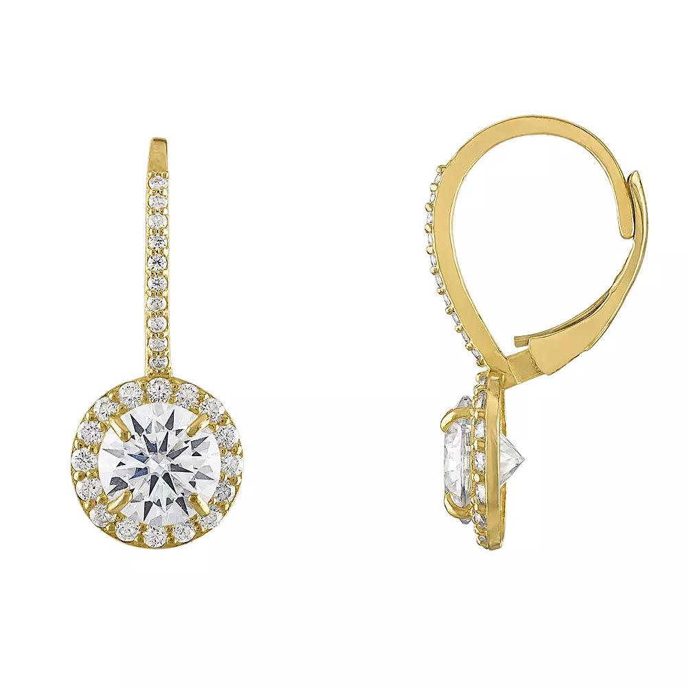Finish off your ensemble with an elegant touch of sparkle with these 10k gold White Lotus lab-created moissanite halo drop hoop earrings. Finish off your ensemble with an elegant touch of sparkle with these 10k gold White Lotus lab-created moissanite halo drop hoop earrings. FEATURES Length: 23.25 mm Backings: leverback Nickel free Metal: 10k gold Finish: polished Packaging: boxedSTONE DETAILS Stone type: lab-created moissanite Total weight: 3 3/4 ct. Center stone size: 7 mm Center stone weight: 2 7/8 ct. Shape: round Setting: prong Gemstones may have been treated to enhance their appearance. Special care may be required. Please visit our Gemstone Treatment & Special Care Guide for more information. Please note, due to the high value of this item, a signature may be required upon delivery. Color: Yellow. Gender: female. Age Group: adult.