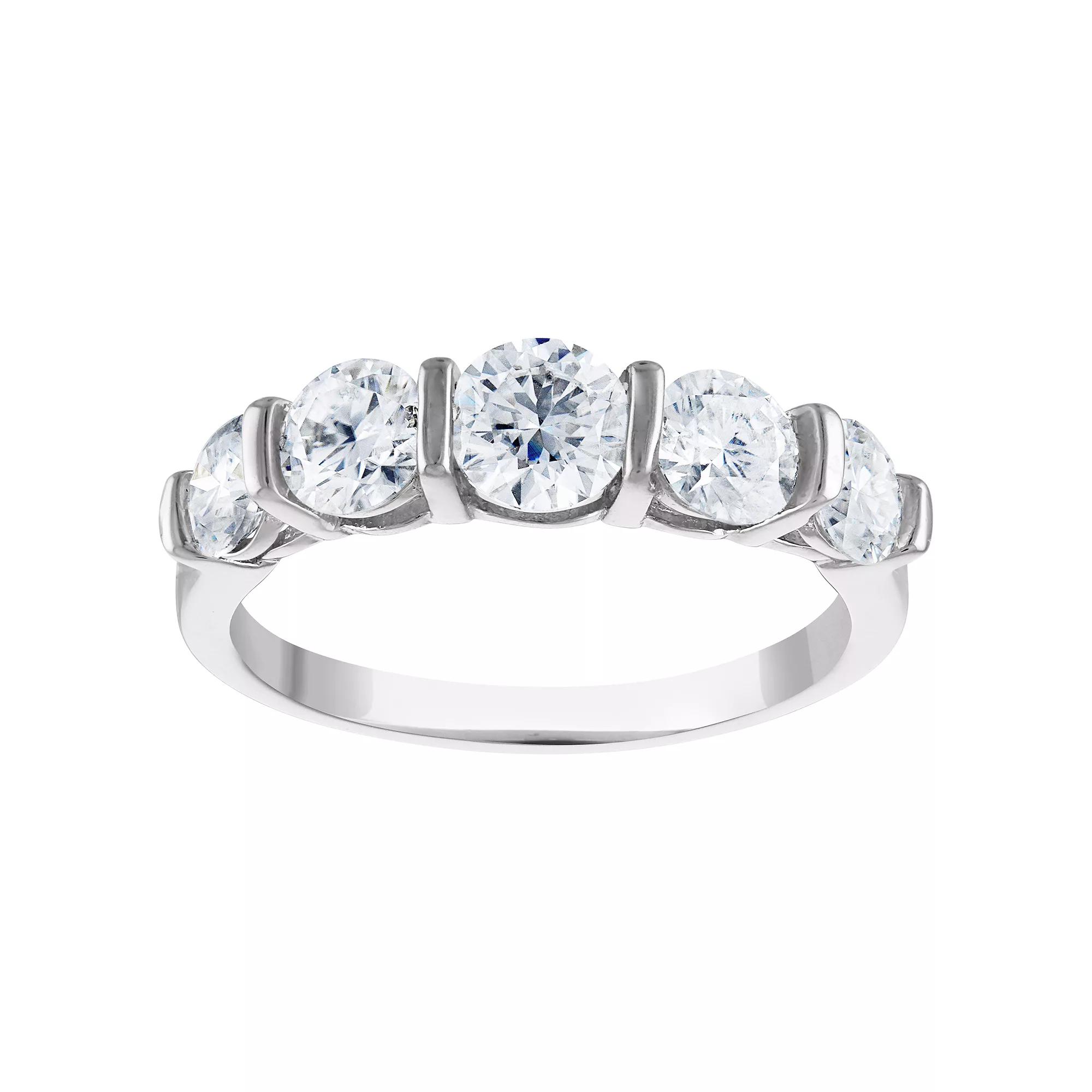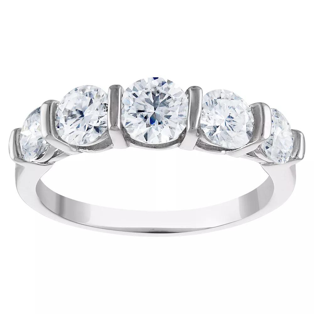 Display your devotion in eye-catching style with this sparkling lab-created moissanite White Lotus sterling silver engagement ring. Click on this JEWELRY & WATCHES GUIDE to learn about fit, styles, materials and more! Display your devotion in eye-catching style with this sparkling lab-created moissanite White Lotus sterling silver engagement ring. Click on this JEWELRY & WATCHES GUIDE to learn about fit, styles, materials and more! FEATURES Width: 5mm Metal: sterling silver Plating: platinum Finish: polished Nickel free Packaging: boxedSTONE DETAILS Center stone size: 5mm Stone type: lab-created moissanite Total weight: 2 1/3 ct. Center stone weight: 1/2 ct. Shape: round Setting: prong Size: 10. Gender: female. Age Group: adult.