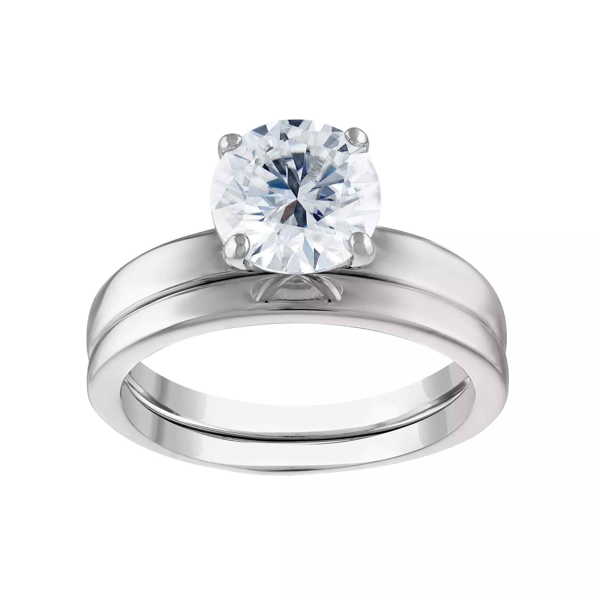 This gorgeous White Lotus lab-created moissanite bridal set ring is the perfect way to show the everlasting love that you share with the most important person in your life. Click on this JEWELRY & WATCHES GUIDE to learn about fit, styles, materials and more! This gorgeous White Lotus lab-created moissanite bridal set ring is the perfect way to show the everlasting love that you share with the most important person in your life. Click on this JEWELRY & WATCHES GUIDE to learn about fit, styles, materials and more! FEATURES Width: 8 mm Metal: sterling silver Plating: platinum Finish: polished Packaging: boxed Nickel freeSTONE DETAILS Stone type: lab-created moissanite Total weight: 2 ct. Center stone size: 8 mm Shape: round Setting: prong Gemstones may have been treated to enhance their appearance. Special care may be required. Please visit our Gemstone Treatment & Special Care Guide for more information. Size: 5. Gender: female. Age Group: adult.