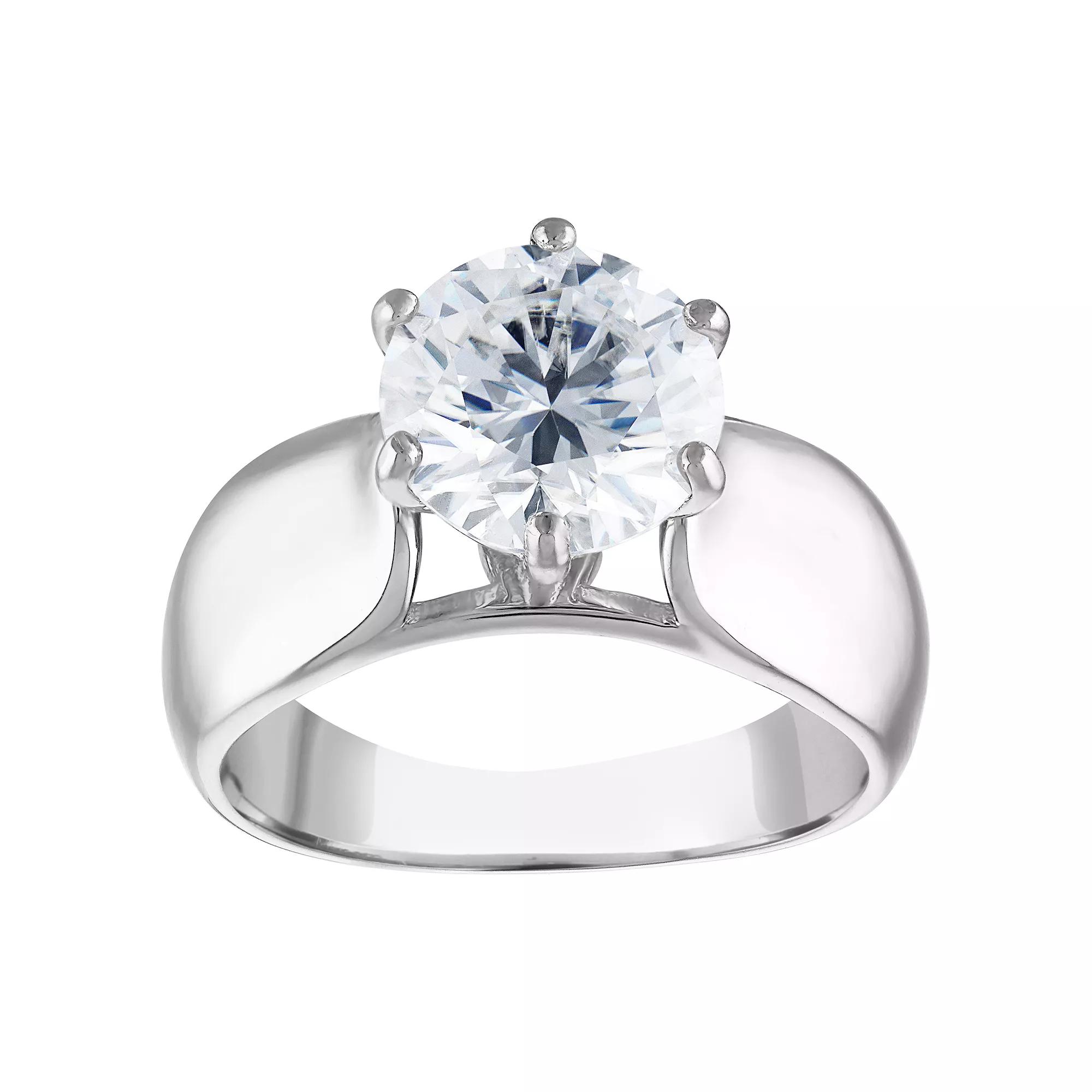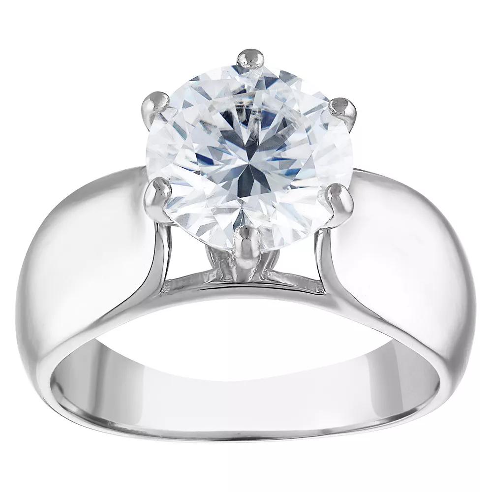 Celebrate your love with this stunning White Lotus sterling silver lab-created moissanite engagement ring. Click on this JEWELRY & WATCHES GUIDE to learn about fit, styles, materials and more! Celebrate your love with this stunning White Lotus sterling silver lab-created moissanite engagement ring. Click on this JEWELRY & WATCHES GUIDE to learn about fit, styles, materials and more! FEATURES Width: 9 mm Metal: sterling silver Plating: platinum Finish: polished Packaging: boxed Nickel freeSTONE DETAILS Stone type: lab-created moissanite Total weight: 3 ct. Center stone size: 9 mm Shape: round Setting: prong Gemstones may have been treated to enhance their appearance. Special care may be required. Please visit our Gemstone Treatment & Special Care Guide for more information. Size: 6. Gender: female. Age Group: adult.