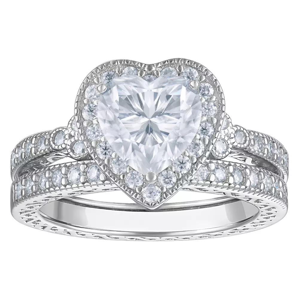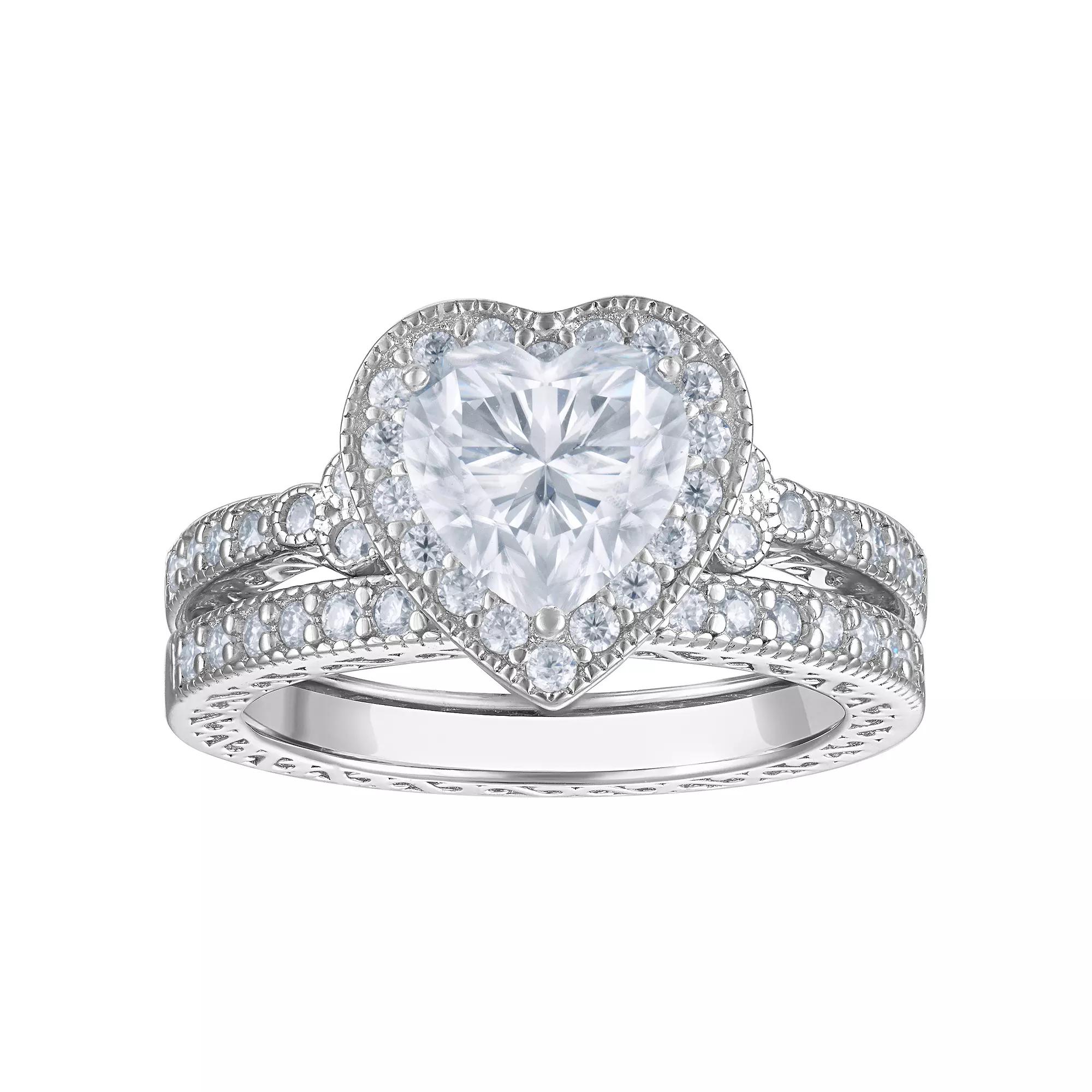 Celebrate your love with this White Lotus bridal ring set. This exquisite set features a heart-shaped lab-created moissanite center stone and additional moissanite accents, all crafted in elegant sterling silver for a timeless and romantic look. Click on this JEWELRY & WATCHES GUIDE to learn about fit, styles, materials and more! Celebrate your love with this White Lotus bridal ring set. This exquisite set features a heart-shaped lab-created moissanite center stone and additional moissanite accents, all crafted in elegant sterling silver for a timeless and romantic look. Click on this JEWELRY & WATCHES GUIDE to learn about fit, styles, materials and more! FEATURES Width: 12 mm Shank style: traditional Band fit: half-round Nickel free Metal: sterling silver Plating: rhodium Finish: polished Packaging: boxedSTONE DETAILS Stone type: lab-created moissanite Total weight: 3 1/4 ct. Center stone weight: 2 ct. Center stone size: 8 mm Shape: heart Setting: prong Gemstones may have been treated to enhance their appearance. Special care may be required. Please visit our Gemstone Treatment & Special Care Guide for more information. Size: 5. Gender: female. Age Group: adult.