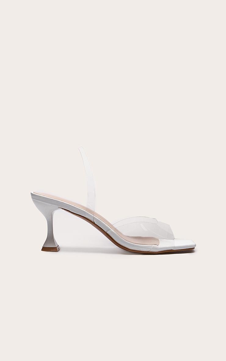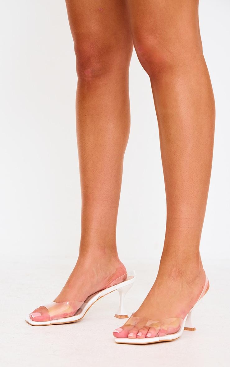 White Low Cake Stand Square Toe Clear Strap Slingback Heeled Sandals