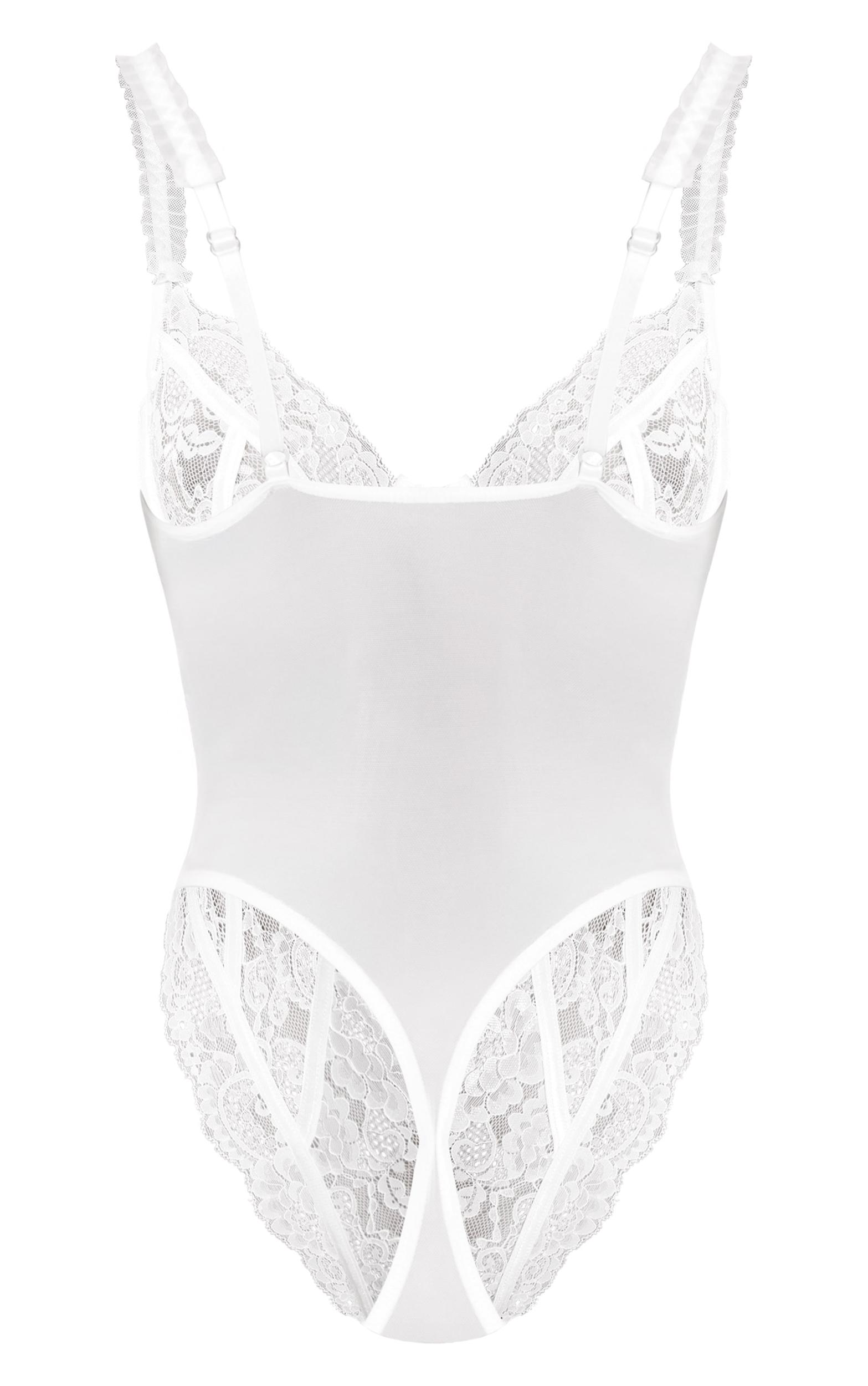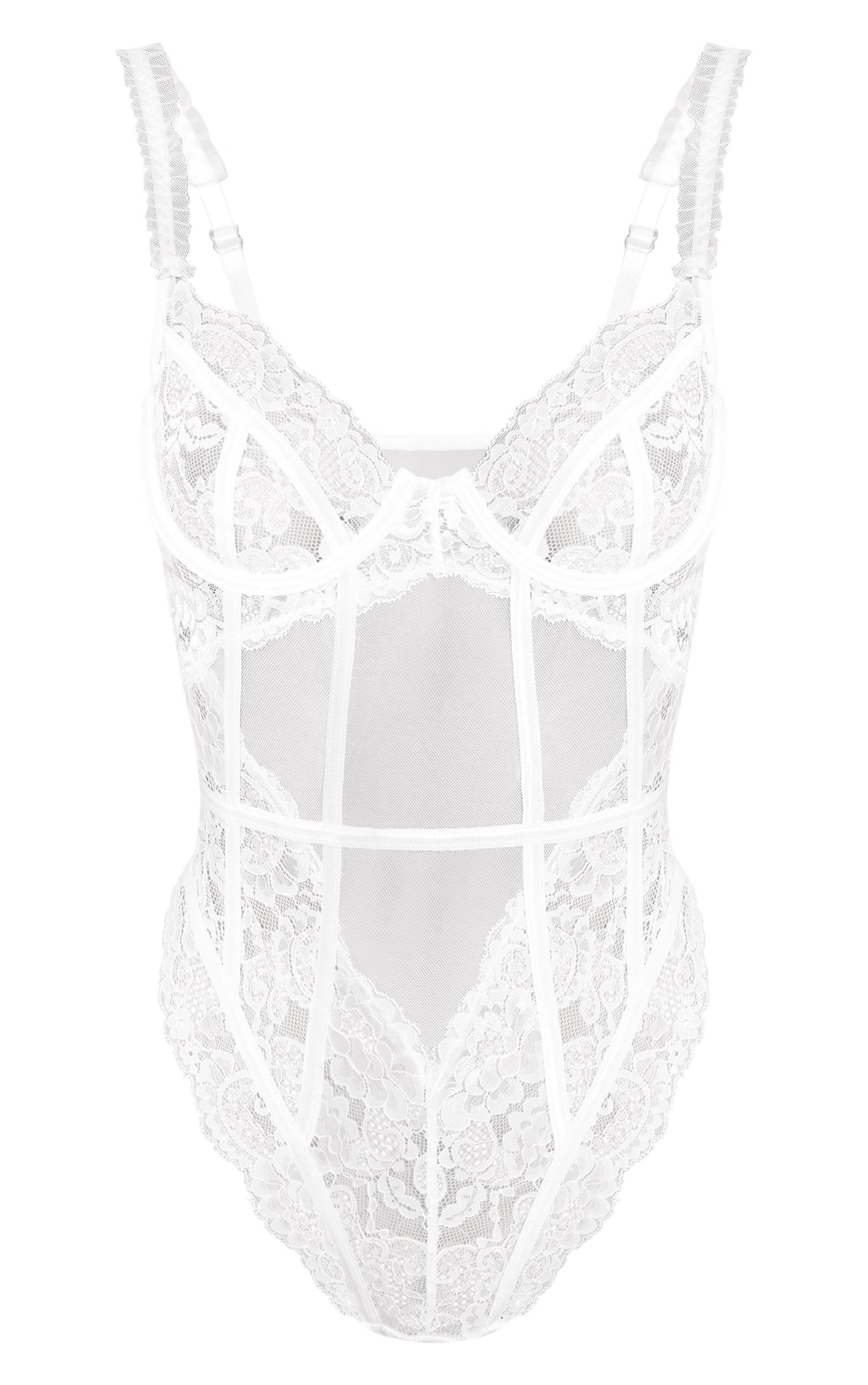 The white mesh frill detail panelling lace bodysuit is daring and elegant, combining sheer panels with delicate lace for a statement look. The frill detailing adds romantic flair, making it ideal for special occasions. Wear with tailored pants for an elevated evening look or pair with a skirt for a striking outfit.Length approx 66cm/26inch (Based on sample size S)Model wears size SModel Height - 5ft 6inchp]:!mb-4inch>Brand: PrettyLittleThingCategory: Lingerie & NightwearProduct type: BodysuitColor: WhiteMaterial: Woven LaceOccasion: Day