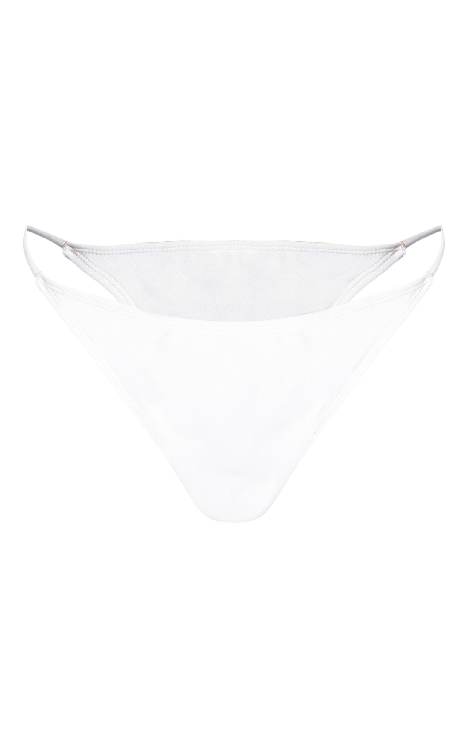 The perennial white bikini bottom, reimagined for the modern wardrobe. These string thong bikini bottoms are crafted from a crisp white fabric, offering a clean and refined aesthetic. The minimal design lends itself to versatile styling options; consider it a foundational piece for building your resort edit. Pair it with a statement bikini top in a bold print to balance the simplicity. Length approx 23cm/9inch (Based on a sample size UK 8) Model wears size UK 8/ EU 36/ AUS 8/ US 4Model Height - 5ft 9inchp]:!mb-4inch>Brand: PrettyLittleThingCategory: SwimwearProduct type: Bikini BottomColor: WhiteMaterial: SwimDesign: Plain