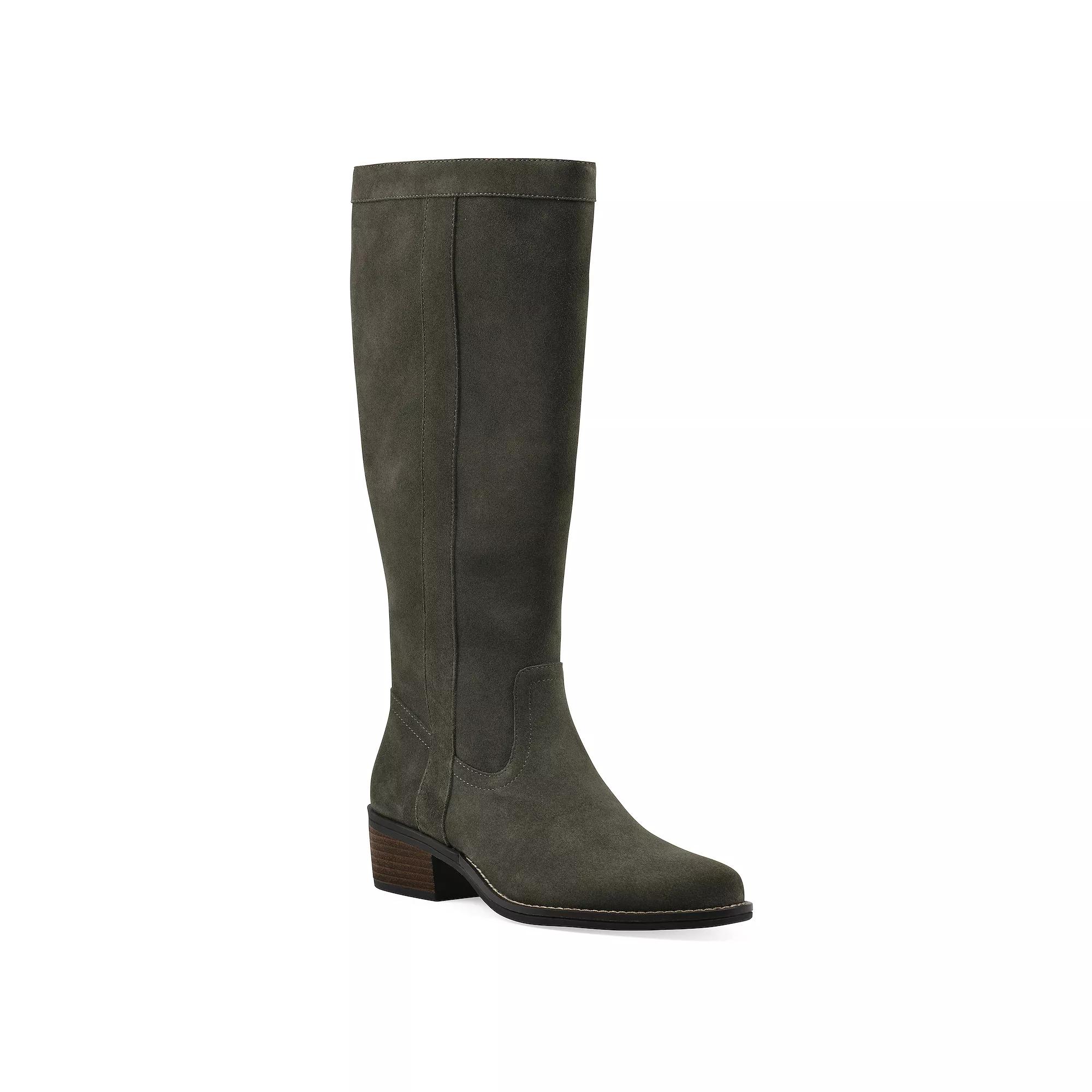 Discover effortless style with these tall shaft boots from White Mountain. Featuring a low heel and a chic tapered toe, they seamlessly blend comfort with practicality, making them the perfect choice for any occasion where you want to look and feel fabulous. Click this FOOTWEAR GUIDE to find the perfect fit and more! - https://www.kohls.com/feature/shoesizeguide.jsp. FEATURES: Smooth and practical design for versatile wear, Low heel and tapered toe for style and comfort. DETAILS: Round toe, Zipper closure, Heel height: 2 in., Platform height: 0.5 in., Treaded outsole, Imported. FIT & SIZE: Knee high shaft, Shaft height: 14.25 in., Shaft circumference: regular 15.5 in. and wide calf 16.5 in. MATERIAL & CARE: Suede upper, Polyurethane footbed, Fabric lining, Foam midsole, Manmade outsole, Spot clean. Size: 8 Wc. Color: Army Suede. Gender: female. Age Group: adult. Material: LEATHER.