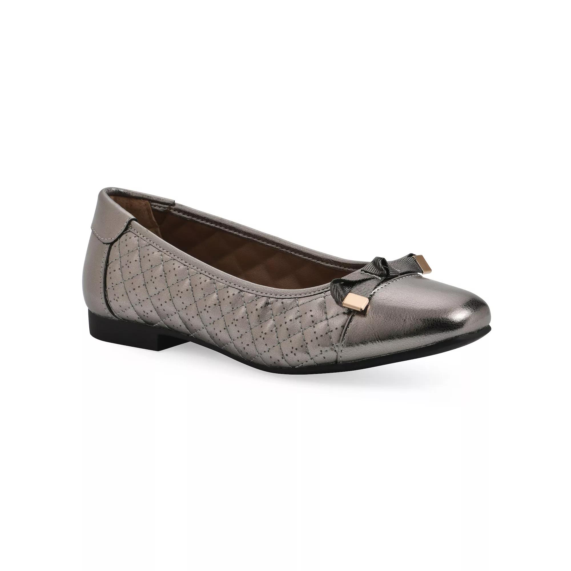 Make a stylish statement with the Bocah from White Mountain Shoes. Featuring a sleek square toe and a delightful diamond quilted upper adorned with a charming bow, these slip-on flats effortlessly elevate any outfit while ensuring you stand out in any crowd. Click this FOOTWEAR GUIDE to find the perfect fit and more! - https://www.kohls.com/feature/shoesizeguide.jsp. FEATURES: Smooth square toe design for a modern look, Diamond quilted upper with a stylish bow accent. DETAILS: Imported, Square toe, Slip-on closure, Heel height: 0.5 inches, Platform height: 0.25 inches, Treaded outsole. FIT & SIZE: Slip-on design for easy wear, Round toe for a comfortable fit. MATERIAL & CARE: Polyurethane and fabric upper, Polyurethane footbed, Polyurethane lining, Foam midsole, Manmade outsole, Spot clean. Size: 11 Med. Color: Pewter Metallic. Gender: female. Age Group: adult. Material: SYNTHETIC.