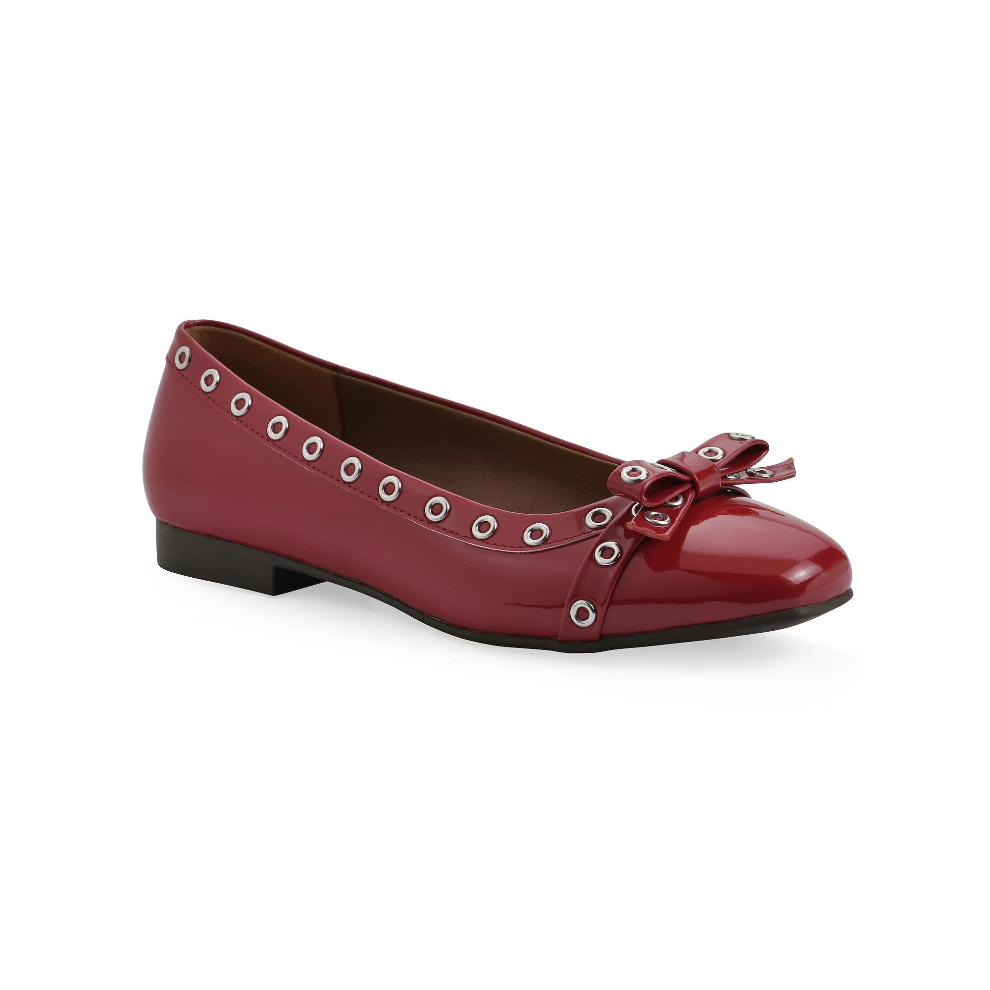 Discover effortless elegance with these chic ballet flats from White Mountain. Featuring edgy grommet accents and a cushioned insole for all-day comfort, these versatile slip-ons perfectly complement everything from your favorite denim to flowy dresses, making them a must-have for any stylish wardrobe. Click this FOOTWEAR GUIDE to find the perfect fit and more! - https://www.kohls.com/feature/shoesizeguide.jsp. FEATURES: Grommet accents for a stylish edge, Cushioned insole for all-day comfort, Versatile design pairs well with denim and dresses. DETAILS: Imported, Square toe, Slip-on closure, 0.5" heel height, Treaded outsole, 0.25" platform height. FIT & SIZE: Slip-on design for easy wear, Round toe for a comfortable fit. MATERIAL & CARE: Polyurethane upper, Polyurethane footbed, Polyurethane lining, Foam midsole, Manmade outsole, Spot clean. Size: 8 Med. Color: Cruella Red Patent. Gender: female. Age Group: adult. Material: SYNTHETIC.