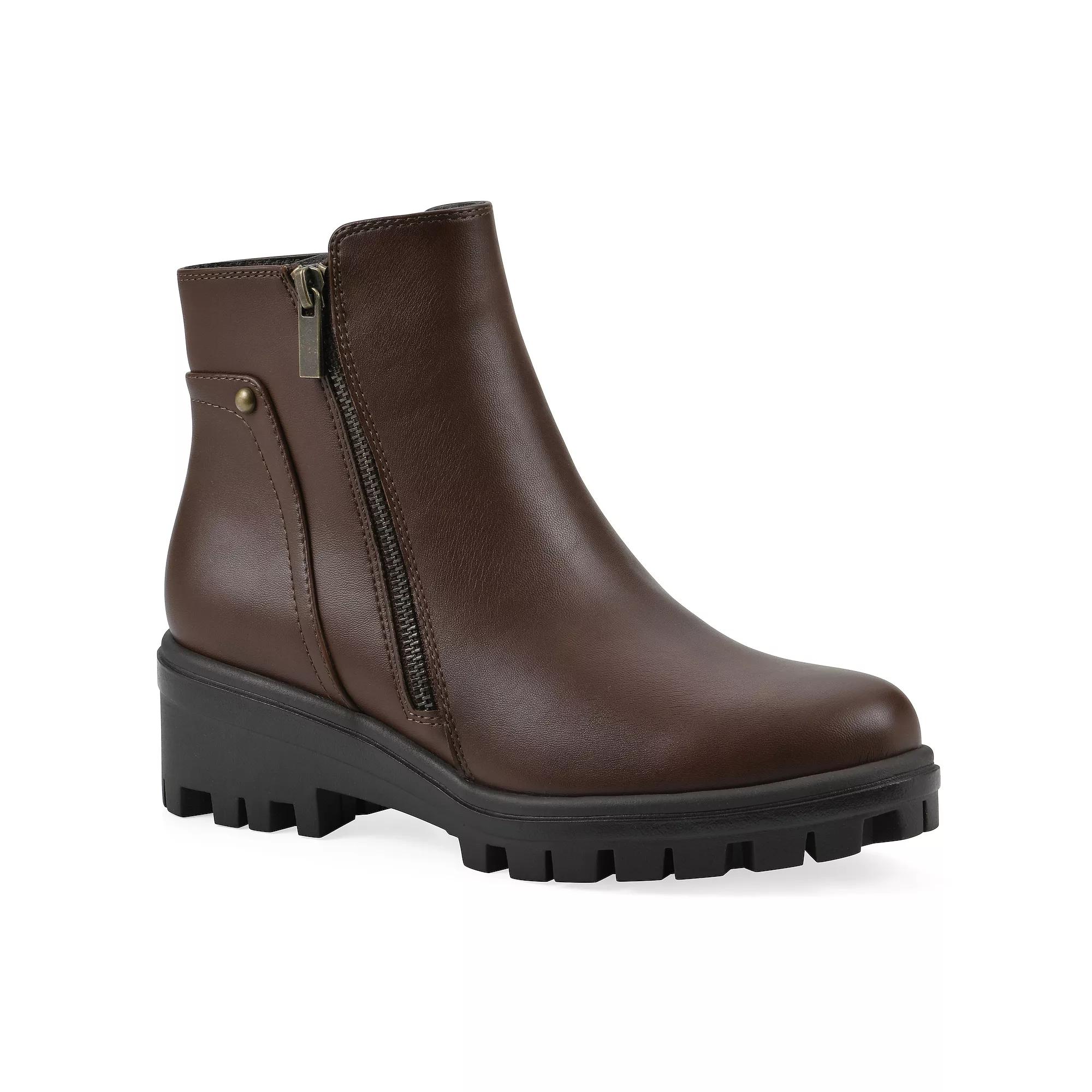 Experience the perfect blend of style and functionality with the Tahj chelsea boot from White Mountain Shoes. Featuring a sleek, pull-on design enhanced by a convenient side zipper, these booties effortlessly elevate your look while providing all-day comfort for both casual outings and polished events. Click this FOOTWEAR GUIDE to find the perfect fit and more! - https://www.kohls.com/feature/shoesizeguide.jsp. FEATURES: Timeless silhouette with a modern update, Sleek pull-on style enhanced by a functional side zipper. DETAILS: Imported, Round toe, Zipper closure, Heel height: 2 inches, Platform height: 1 inch, Lug outsole. FIT & SIZE: Ankle boot shaft detail, Boot shaft circumference: 10.5", Boot shaft height: 4.5". MATERIAL & CARE: Polyester and polyurethane upper, Polyurethane footbed, Foam midsole, Manmade outsole, Spot clean care. Size: 9. Color: Mocha Faux Leather. Gender: female. Age Group: adult. Material: SYNTHETIC.