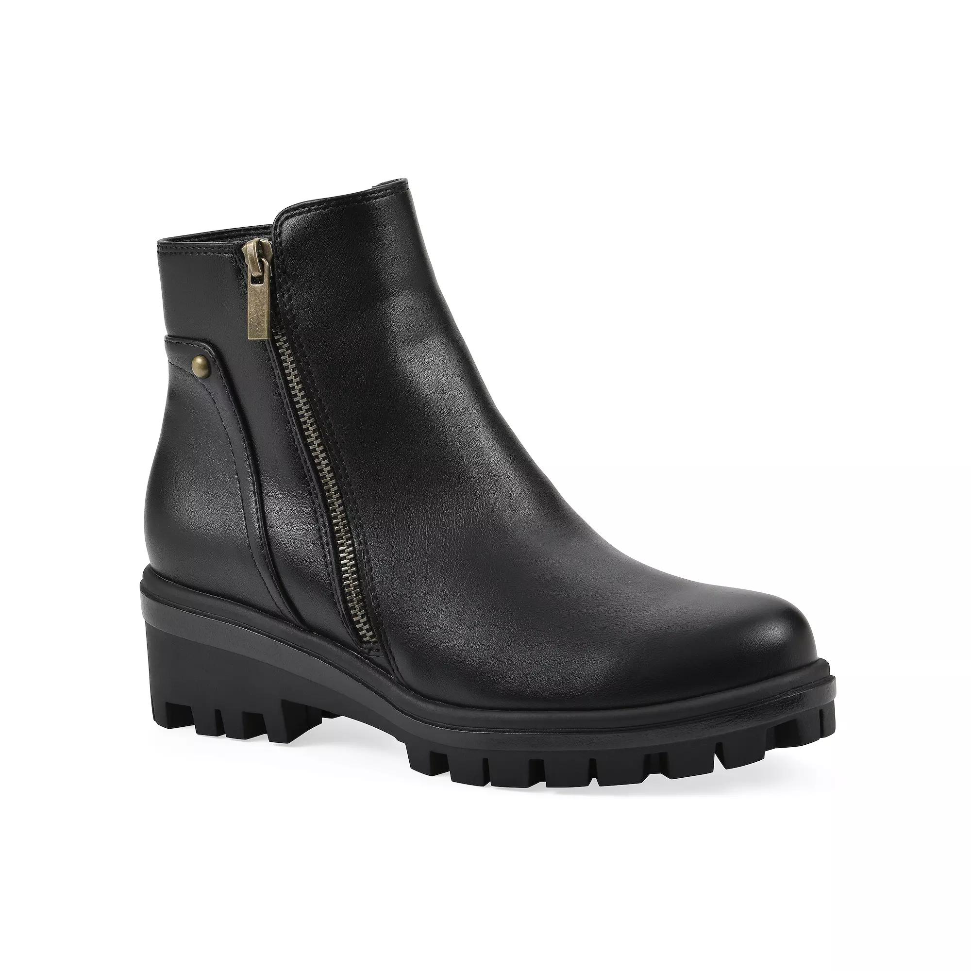 Experience the perfect blend of style and functionality with the Tahj chelsea boot from White Mountain Shoes. Featuring a sleek, pull-on design enhanced by a convenient side zipper, these booties effortlessly elevate your look while providing all-day comfort for both casual outings and polished events. Click this FOOTWEAR GUIDE to find the perfect fit and more! - https://www.kohls.com/feature/shoesizeguide.jsp. FEATURES: Timeless silhouette with a modern update, Sleek pull-on style enhanced by a functional side zipper. DETAILS: Imported, Round toe, Zipper closure, Heel height: 2 inches, Platform height: 1 inch, Lug outsole. FIT & SIZE: Ankle boot shaft detail, Boot shaft circumference: 10.5", Boot shaft height: 4.5". MATERIAL & CARE: Polyester and polyurethane upper, Polyurethane footbed, Foam midsole, Manmade outsole, Spot clean care. Size: 9. Color: Black Faux Leather. Gender: female. Age Group: adult. Material: SYNTHETIC.