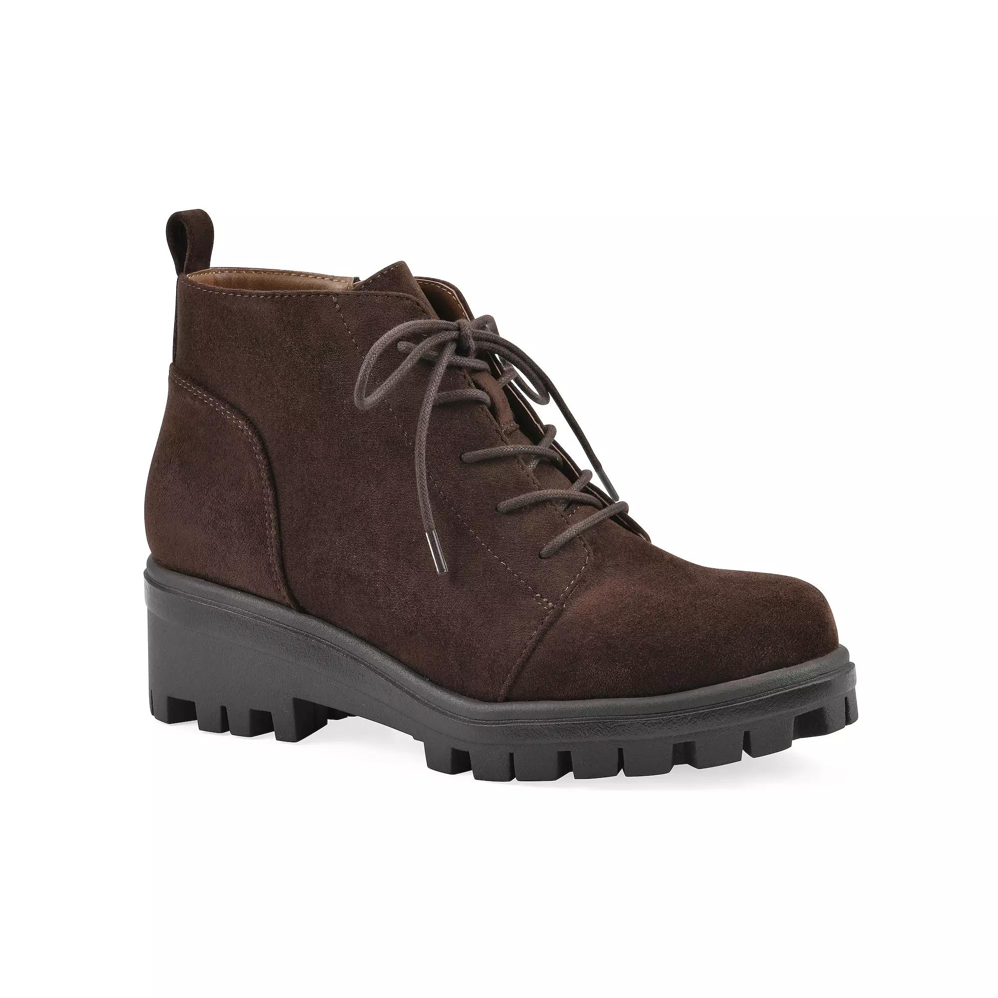 Discover the confident appeal of the Tariq bootie by White Mountain, featuring a sleek silhouette and a timeless lace-up design for a personalized fit. Perfect for adding a contemporary edge to any ensemble, these booties seamlessly blend classic style with modern comfort, making them a must-have for your wardrobe. Click this FOOTWEAR GUIDE to find the perfect fit and more! - https://www.kohls.com/feature/shoesizeguide.jsp. FEATURES: Sleek silhouette with classic lace-up front for a customizable fit, Combines classic design with modern comfort for everyday wear. DETAILS: Round toe, Lace-up closure, Heel height: 2", Platform height: 1", Sole style: Treaded outsole, Imported. FIT & SIZE: Ankle boot shaft, 3.5" boot shaft height, 10.5" boot shaft circumference. MATERIAL & CARE: Polyester upper, Polyurethane footbed and lining, Foam midsole, Manmade outsole, Spot clean. Size: 9 Med. Color: Coco Brown. Gender: female. Age Group: adult. Material: SYNTHETIC.