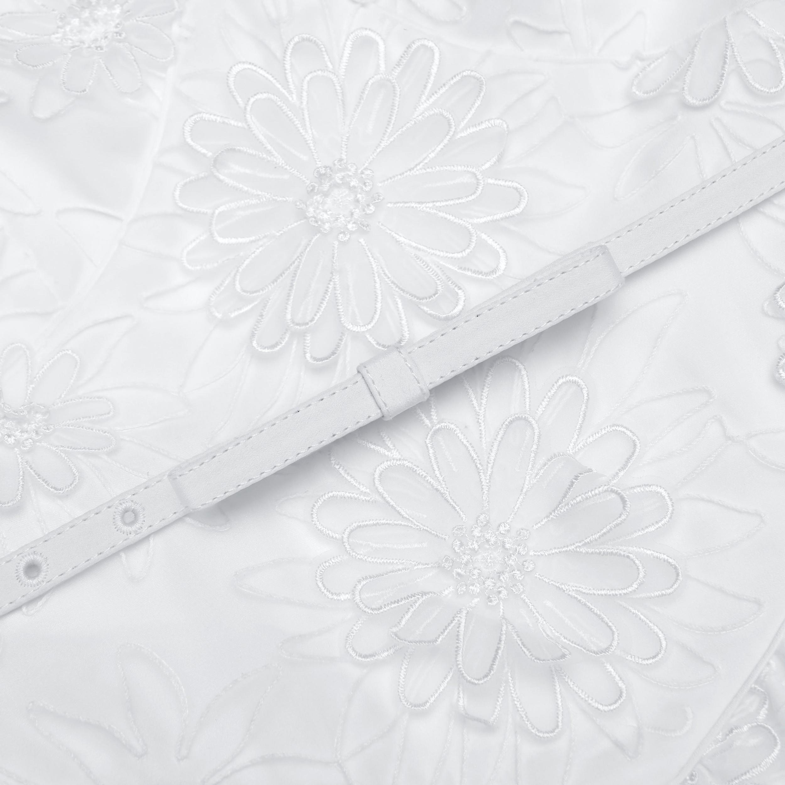 Overlaid with delicate floral embroidery, this mini dress charms with its full mini skirt and bow-topped belt. A strappy neckline frames the form to chic effect – add heels for wedding festivities.Fitted styleThis style has minimal stretchConcealed zip closure at backBubble hemBow motifModel is 5ft10/178cm and wears a size UK 6