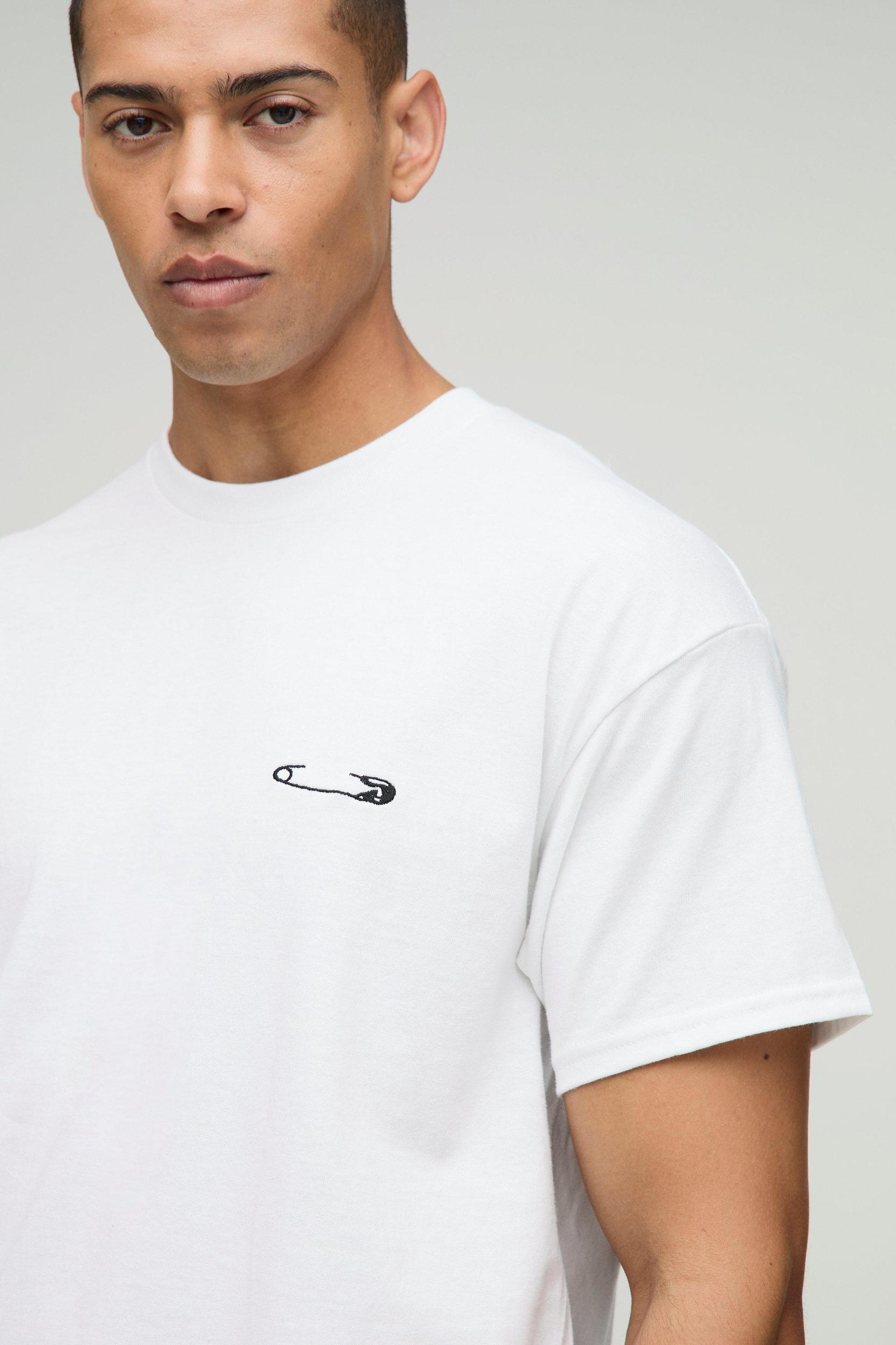 White Oversized Embroidered Safety Pin T-Shirt | boohooMAN USA