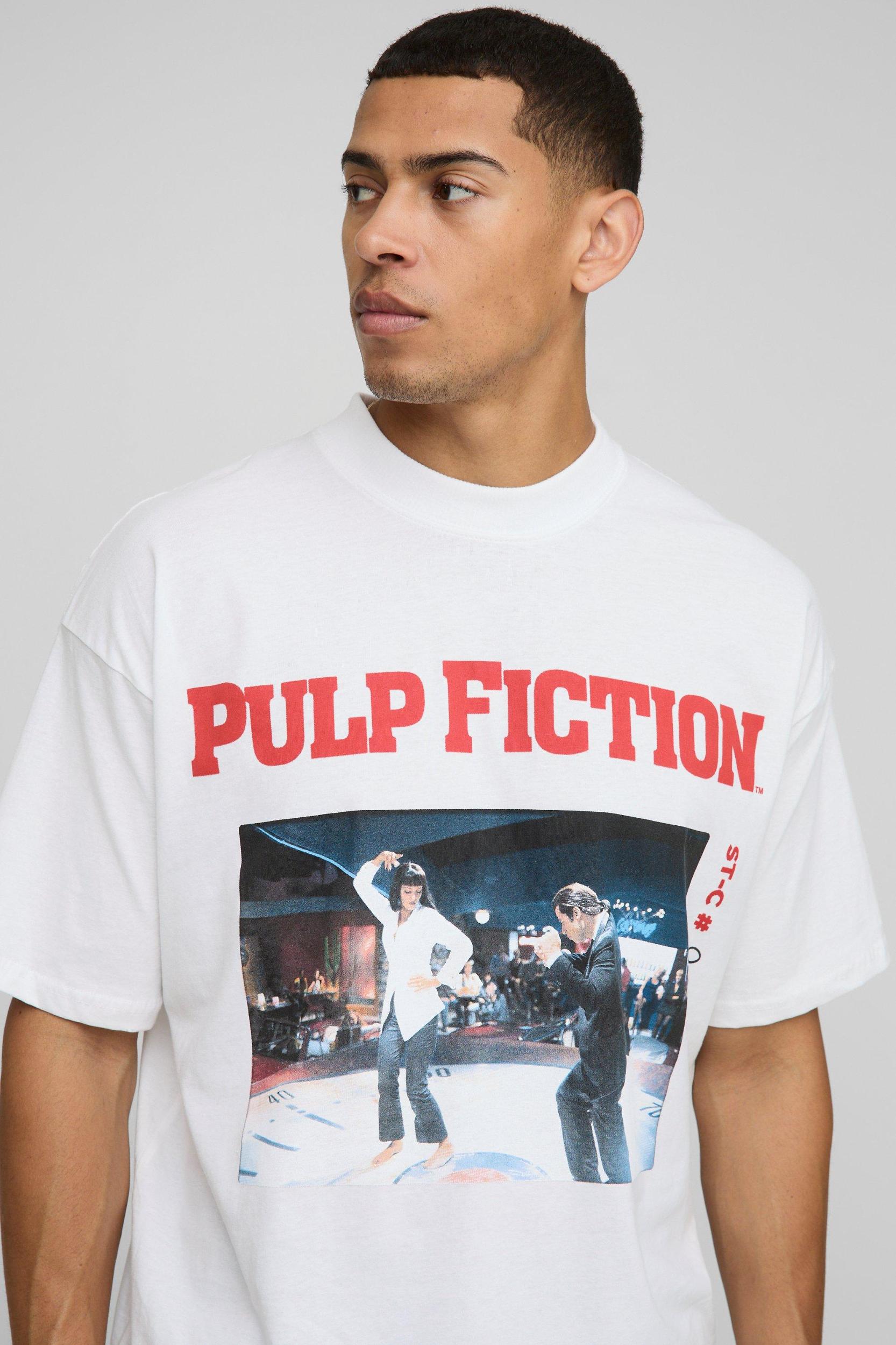 White Oversized Extended Neck Pulp Fiction License T-Shirt | boohooMAN USA