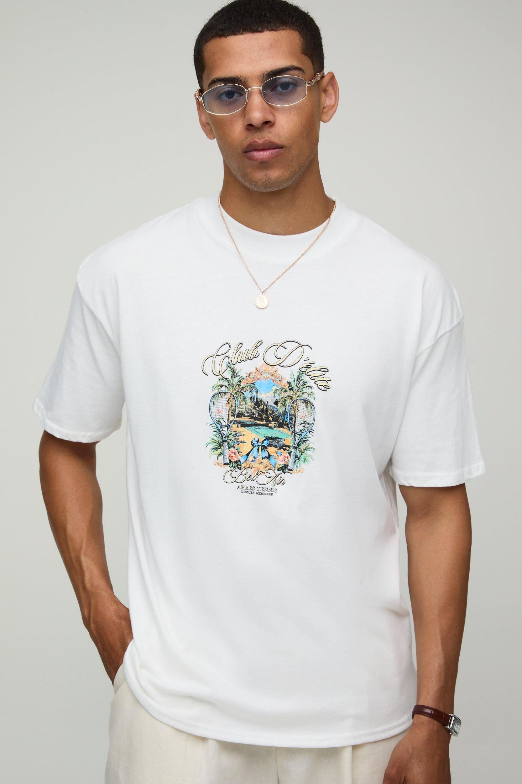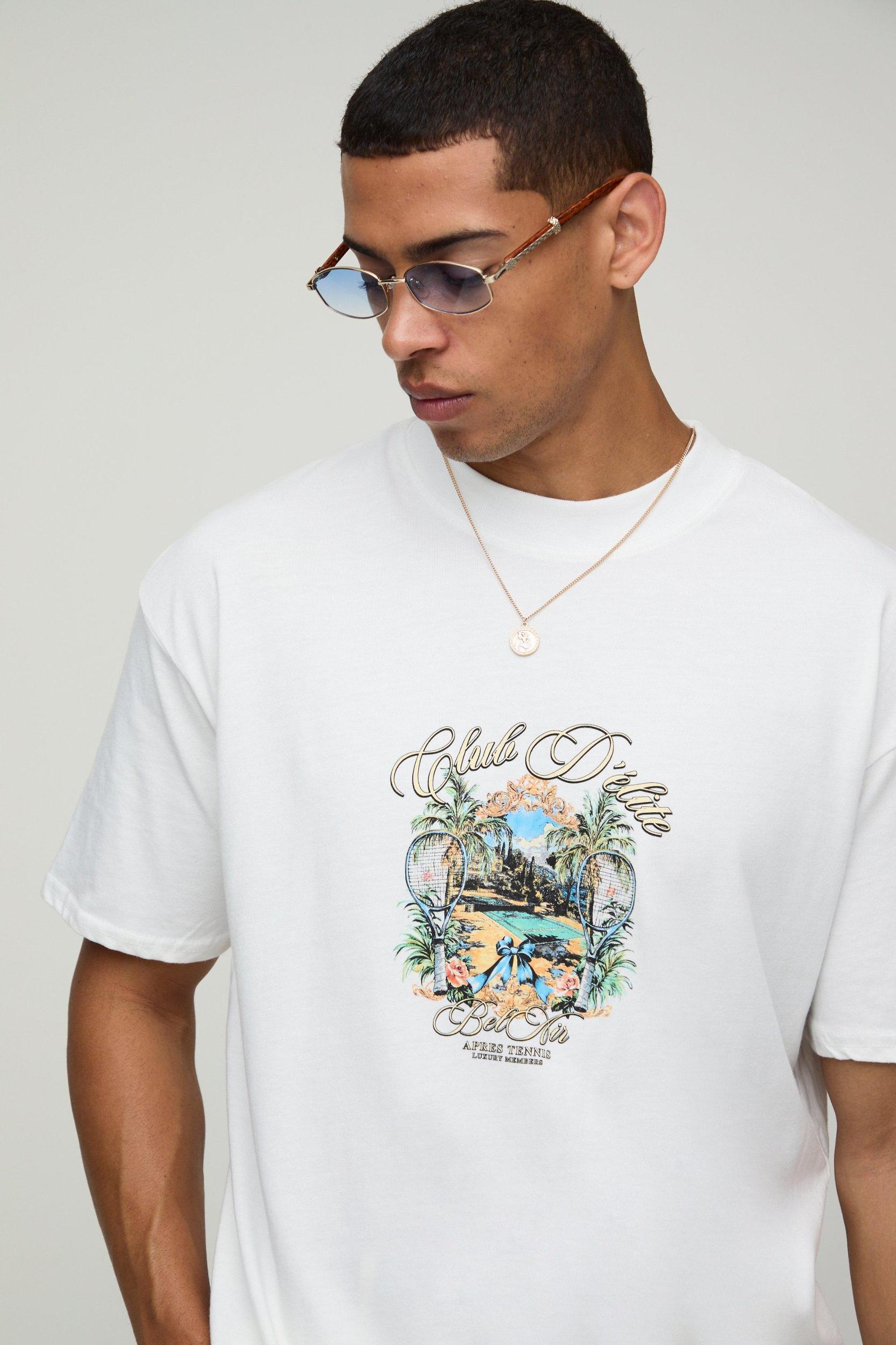 White Oversized MAN Club D'Elite Floral Printed T-Shirt | boohooMAN USA