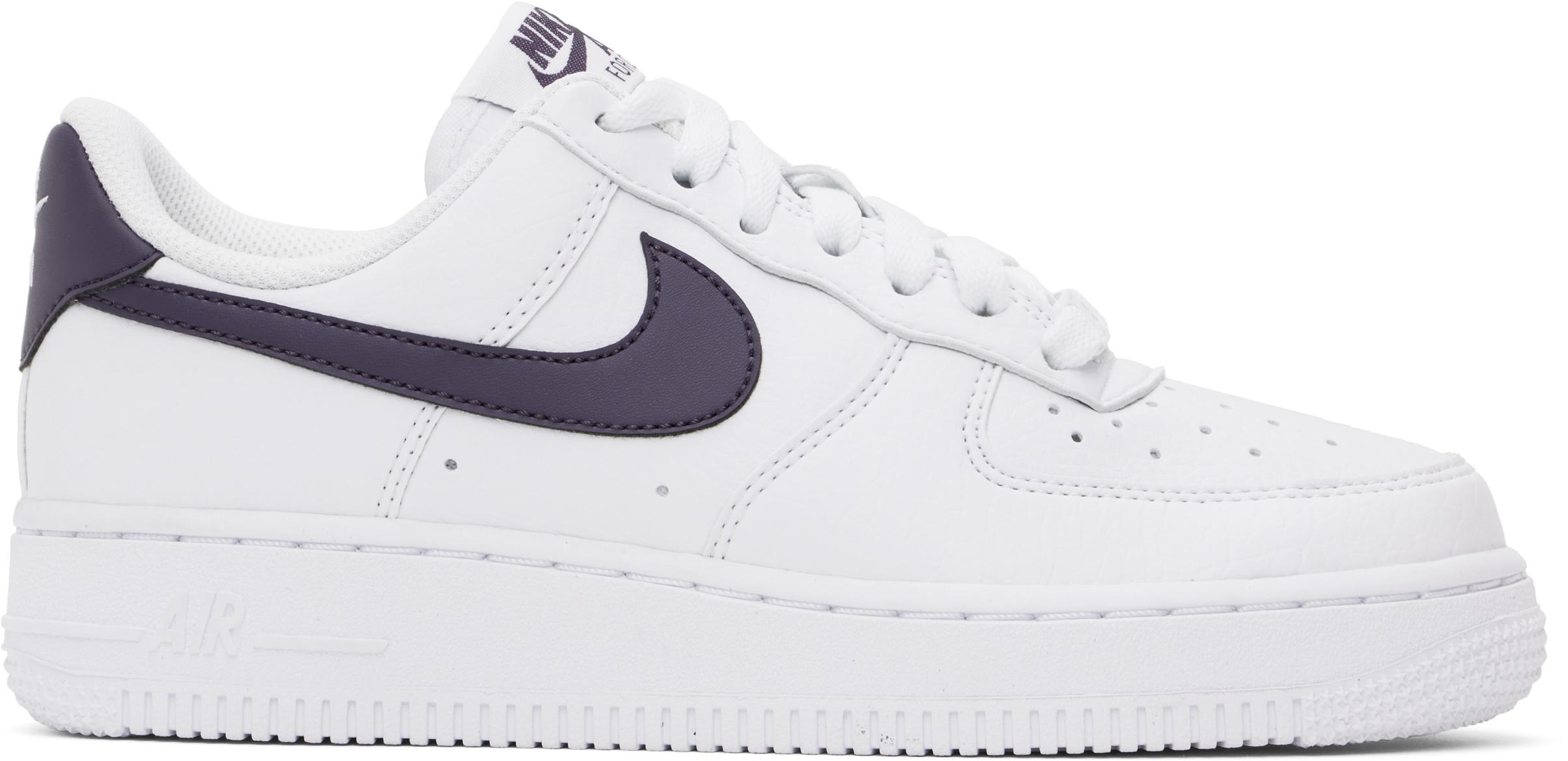 Low-top grained faux-leather sneakers in white and purple.