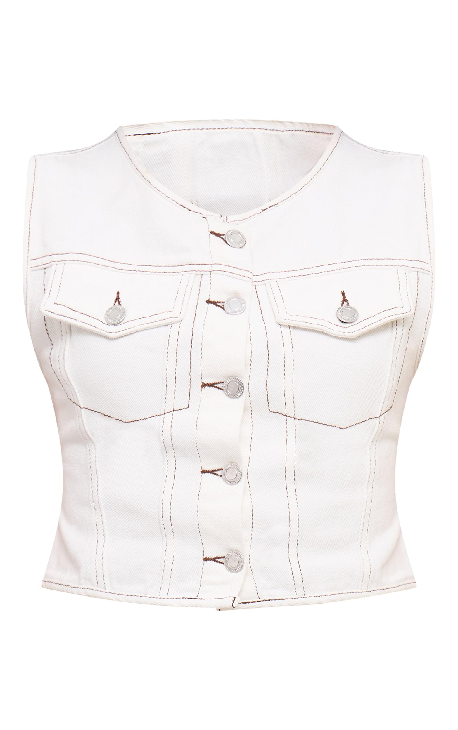 Introducing the white round neck button detail sleeveless denim crop top, a fresh twist on classic denim with a cropped silhouette. Made from durable denim fabric featuring a round neckline and button detail that adds subtle charm. This sleeveless crop top is perfect for layering or wearing on its own during warmer months. Pair with high-waisted jeans and flats for a casual, stylish look.Length approx 38cm/15inch (Based on sample size US 4)Model wears size UK 8/ EU 36/ AUS 8/ US 4Model Height - 5ft 7inchp]:!mb-4inch>Brand: PrettyLittleThingCategory: DenimProduct type: Denim TopColor: WhiteMaterial: Rigid DenimOccasion: Day