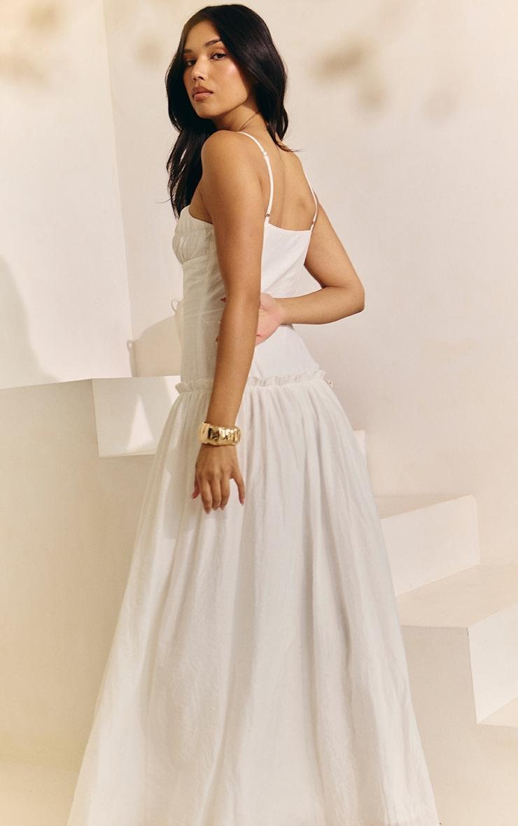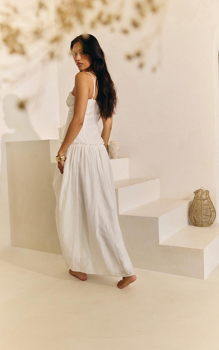 Bring all the feminine feels with this white ruched bust drop waist maxi dress. Designed in a white fabric with a ruched bust and a flattering drop waist style. Style this dress with your favorite flat sandals, understated gold jewelry and a shoulder bag for a look we know you'll love.Length approx 155cm/61inch (Based on sample size US 4)Model wears size UK 8/ EU 36/ AUS 8/ US 4Model Height - 5ft 9inchp]:!mb-4inch>Brand: PrettyLittleThingCategory: DressesProduct type: Shift DressColor: WhiteMaterial: Woven CrepeNeckline: ScoopSleeves: SleevelessOccasion: Day