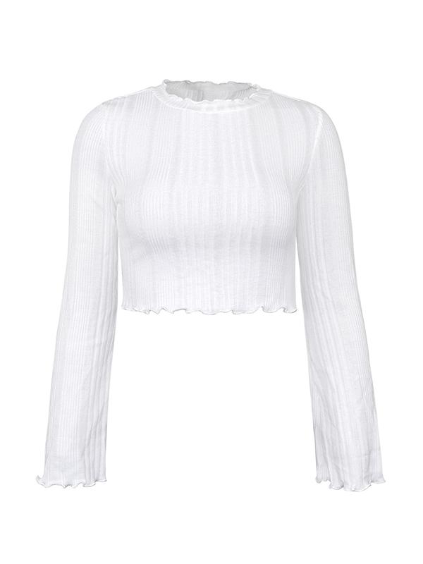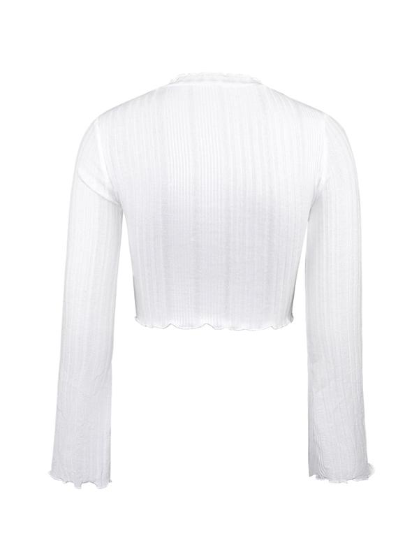 White Ruched Crop Flare Long Sleeve Knit