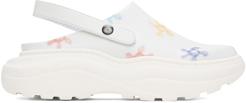 Buffed Apple Skin® faux-leather slip-on loafers in white. Floral pattern printed throughout.