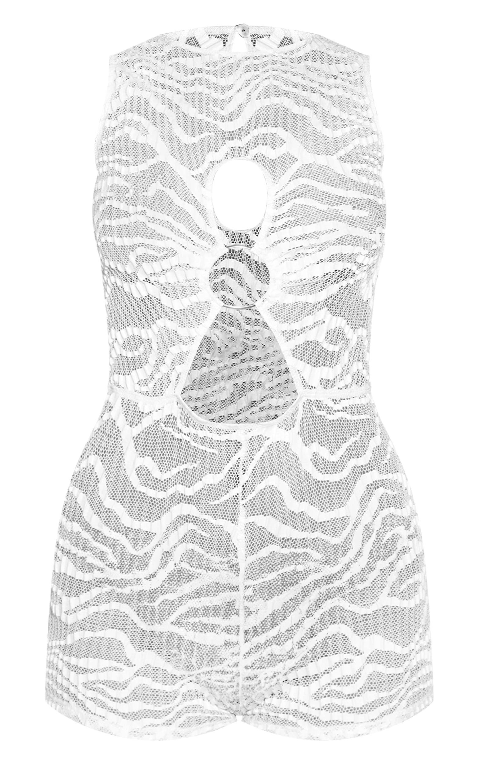 Turn heads for all the right reasons in this white sheer textured jersey ring detail cut out romper. Brought to you in a white sheer textured jersey material with a ring detail and cut out design, this romper is at the top of our wish list. Pair with white heels and simple accessories for a look we're obsessed with. Length approx 81cm/32inch (Based on a sample size UK 8) Model wears size UK 8/ EU 36/ AUS 8/ US 4Model Height - 5ft 6inchp]:!mb-0inch>Category: Jumpsuits & PlaysuitsProduct type: UnitardColor: WhiteMaterial: Textured JerseyOccasion: Day