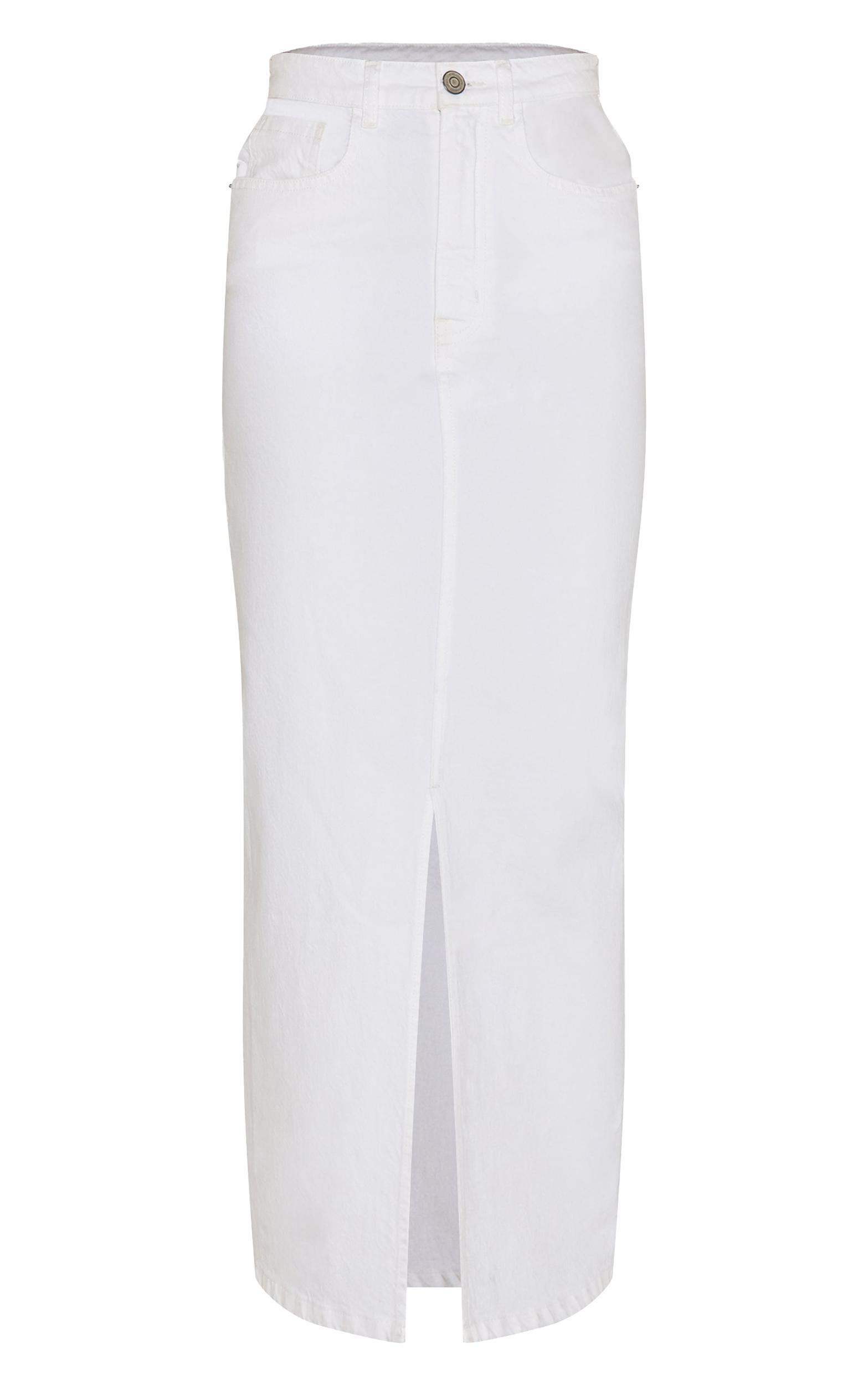 Opt for a classic silhouette in this white split denim maxi skirt. Crafted from white denim, this skirt has a front split, a zip and button fastening and pockets. Style it with a simple Vest top, woven ballet flats and chunky gold jewelry.Length approx 108cm/42.5inch (Based on sample size US 4)Model wears size UK 8/ EU 36/ AUS 8/ US 4Model Height - 5ft 7inchp]:!mb-4inch>Brand: PrettyLittleThingCategory: DenimProduct type: Denim Maxi SkirtColor: WhiteMaterial: Rigid DenimDesign: PlainOccasion: Day