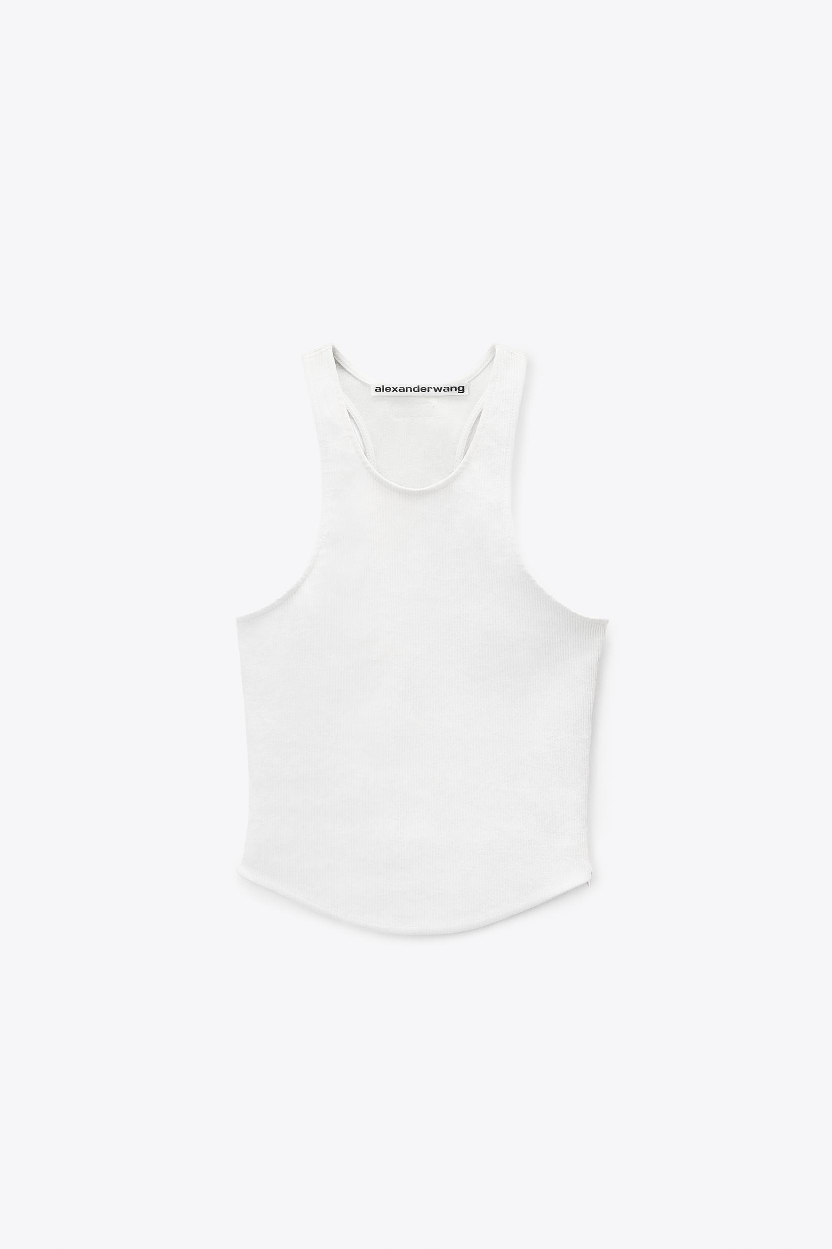 Form-fitting tank top made from white ribbed stretch leather, designed for a contoured fit. Features a racerback neckline, curved hem, and invisible side zipper for easy wear. Finished with a tonal alexanderwang logo patch at the back neck.