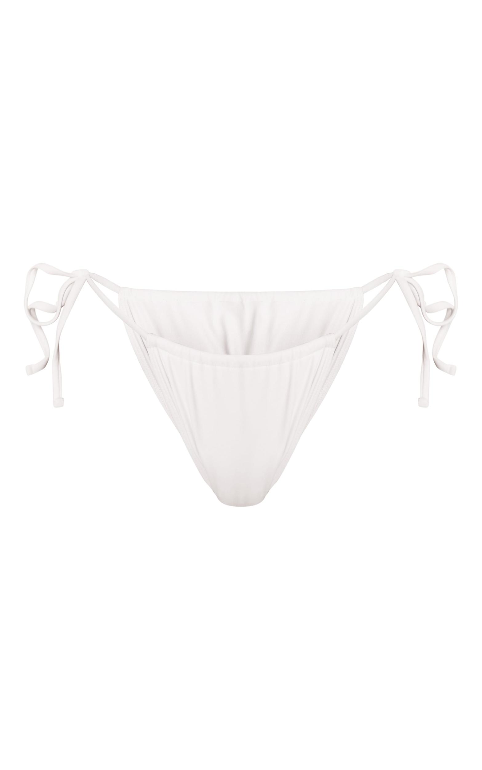 The white tie side ruched bikini bottoms is a versatile addition to your wardrobe, combining elevated design with easy styling potential. Just add its matching bikini top, confidence and your favorite accessories.Length approx 29cm/11.5inch (Based on sample size US 4)Model wears size UK 8/ EU 36/ AUS 8/ US 4Model Height - 5ft 8inchp]:!mb-4inch>Brand: PrettyLittleThingCategory: SwimwearProduct type: Tanga Bikini BottomColor: WhiteMaterial: SwimOccasion: Day