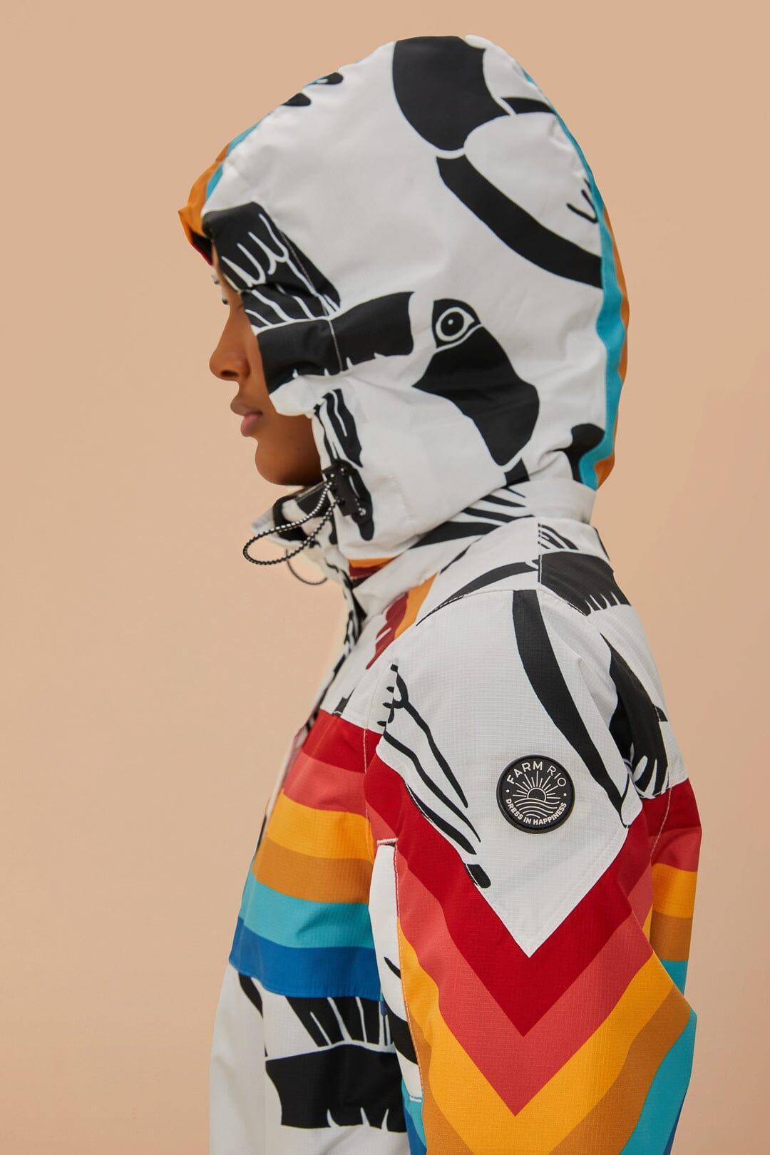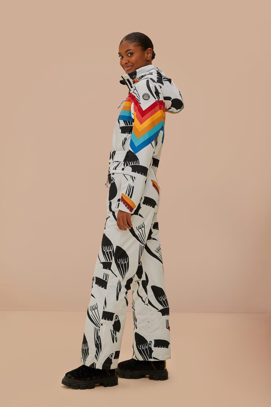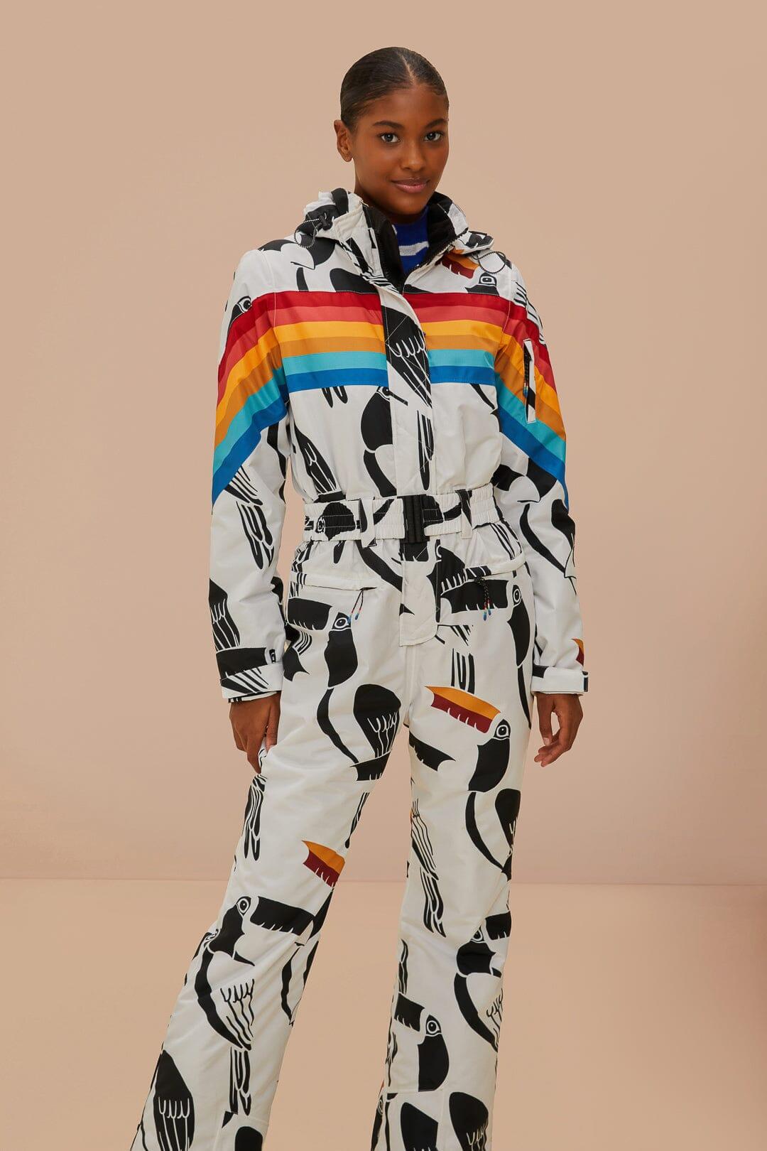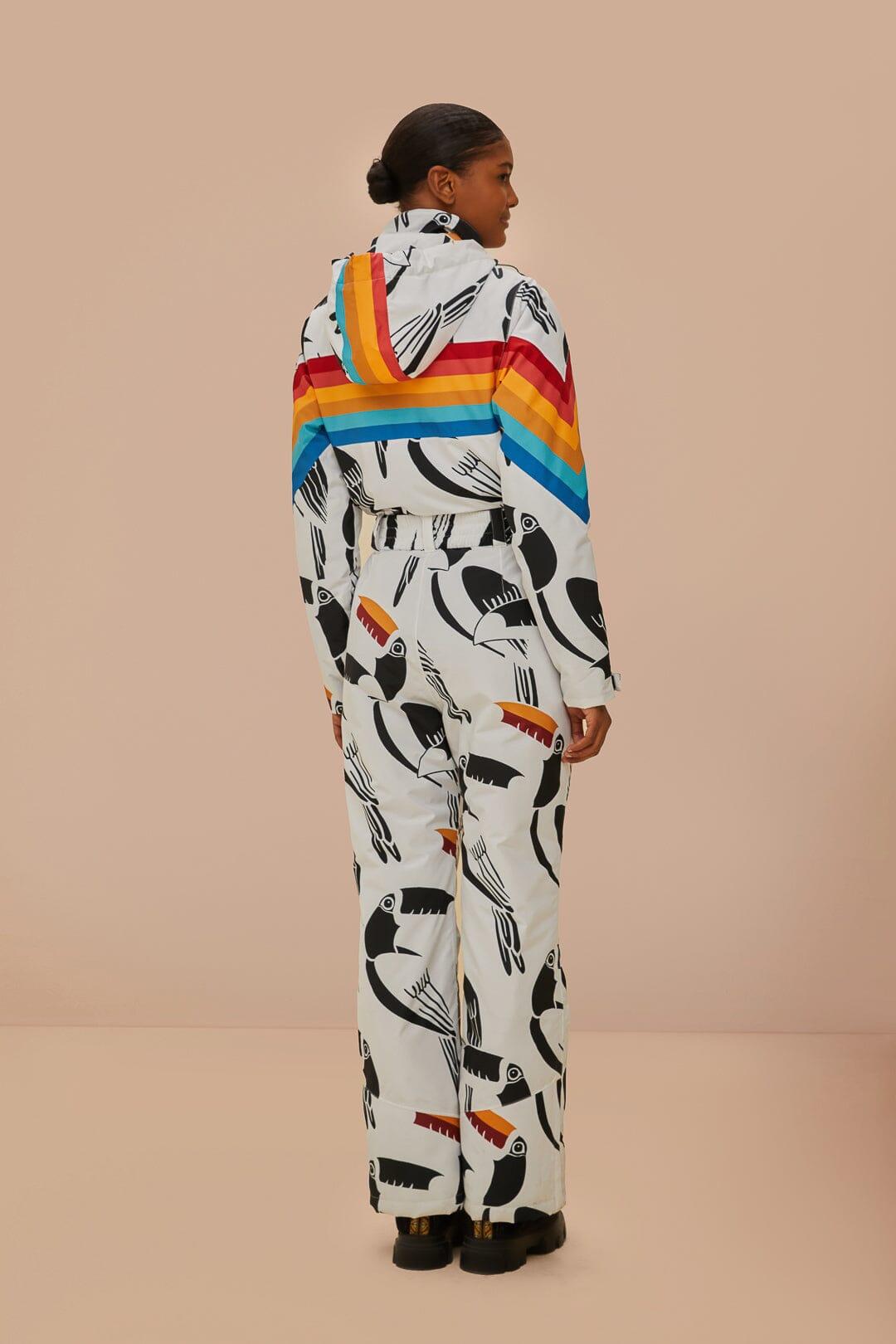 Embrace the slopes with flair in the White Toucans Rainbow Ski Jumpsuit by FARM Rio. A unique high neckline and spirited toucan print meld with vibrant rainbow stripes, creating a playful yet cozy ensemble. Crafted for comfort and statement-making style, this jumpsuit is a delightful companion for your winter adventures, turning heads and warming hearts with its colorful presence.Composition 100% POLYESTERCare Instructions MACHINE WASH GENTLE CYCLE, DO NOT BLEACH, DO NOT TUMBLE DRY, DRY FLAT, IRON AT LOW HEAT, DO NOT DRY CLEANSize and Fit Inches XXS XS S M L XL Bust 36 2/4 38 2/4 40 2/4 42 2/4 45 3/4 48 3/4 Waist 31 2/4 33 2/4 35 2/4 37 2/4 40 2/4 43 3/4 Length 58 58 3/4 59 3/4 60 2/4 61 1/4 62 Hip 38 1/4 40 1/4 42 1/4 44 50 2/4 50 2/4