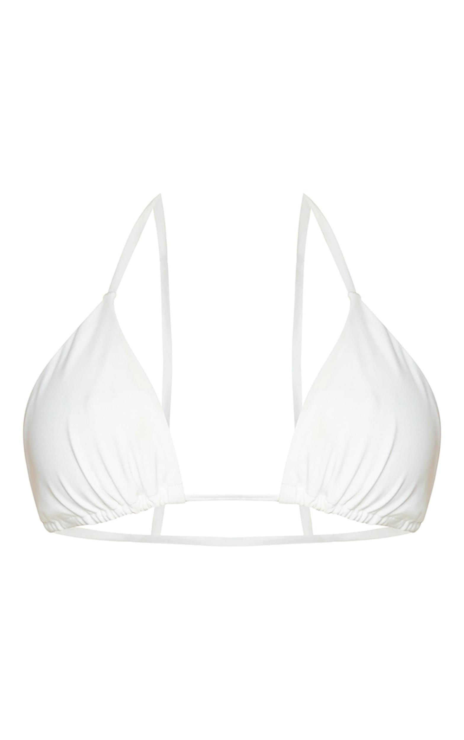 A considered choice for the modern minimalist, the white triangle bikini top offers clean lines and enduring style. Crafted from a crisp white swim fabric, the classic triangle silhouette allows for versatile styling. Tie it your way for a personalised fit, and let the pared-back aesthetic speak volumes. Complement its simplicity with high-waisted bikini bottoms from our dedicated range for a cohesive poolside statement. Length approx 29cm/11.5inch (Based on a sample size UK 8) Model wears size UK 8/ EU 36/ AUS 8/ US 4Model Height - 5ft 6inchp]:!mb-4inch>Brand: PrettyLittleThingCategory: SwimwearProduct type: Bikini TopColor: WhiteMaterial: SwimDesign: Plain